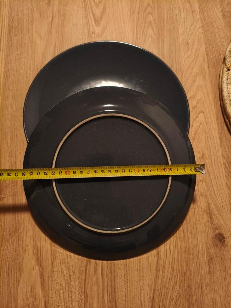 Set van 3 donkerblauwe platte eetborden. Eerste foto met daglicht. Geschikt voor dagelijks gebruik of voor een speciale gelegenheid. De borden zijn in goede staat en hebben een moderne uitstraling. Di