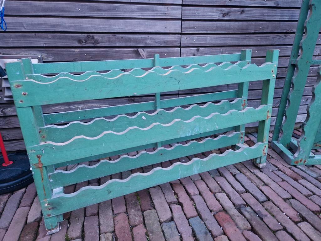 Twee oude houten wijnrekken.