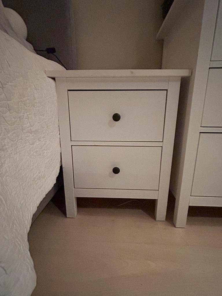 Witte nachtkastje met 2 lades. Ideaal voor naast het bed om spullen op te bergen. In goede staat. Breedte: 0,53 diepte: 0,38 hoogte: 0,66