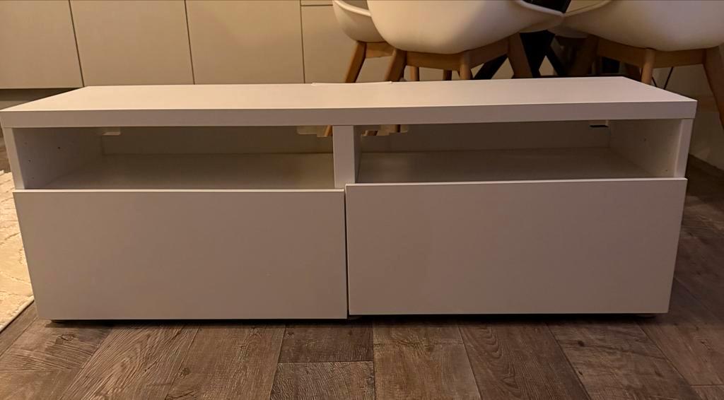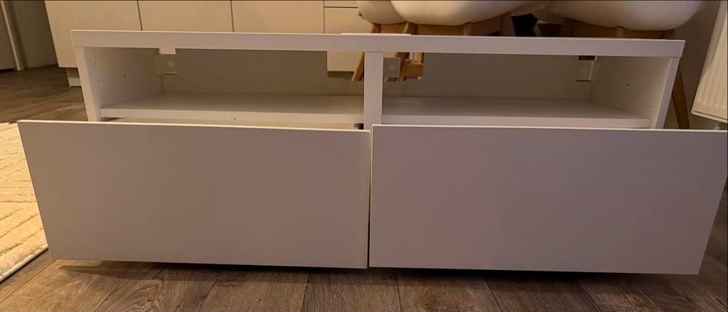 Net kastje met twee lades. Het kastje is in goede staat, maar één van de lades hangt iets. Dit is mogelijk te verhelpen door de lade opnieuw af te stellen. Verder is het kastje netjes en kan het nog p