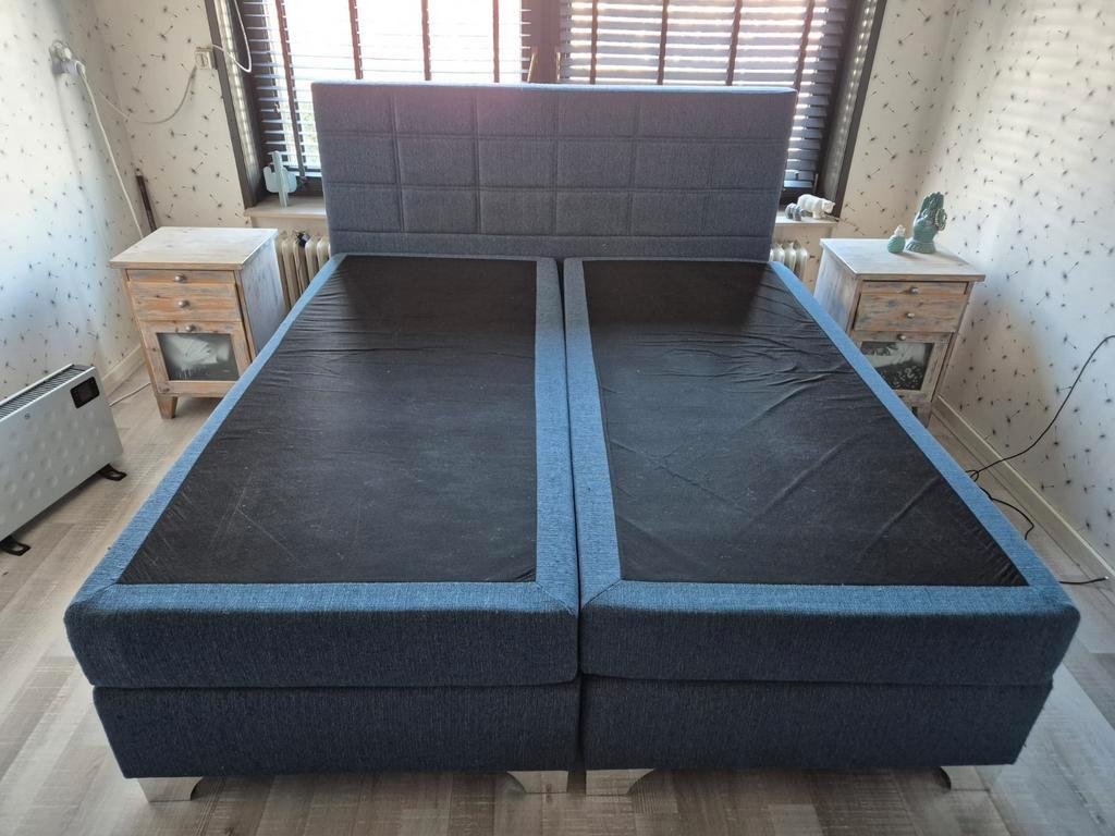 Boxspring is ongeveer 7 jaar oud, er zitten wat haakjes in de stof, voor de rest nog in redelijke staat! Er heeft altijd een topper op gelegen, matrassen zijn schoon. Met de aanschaf van een nieuwe to
