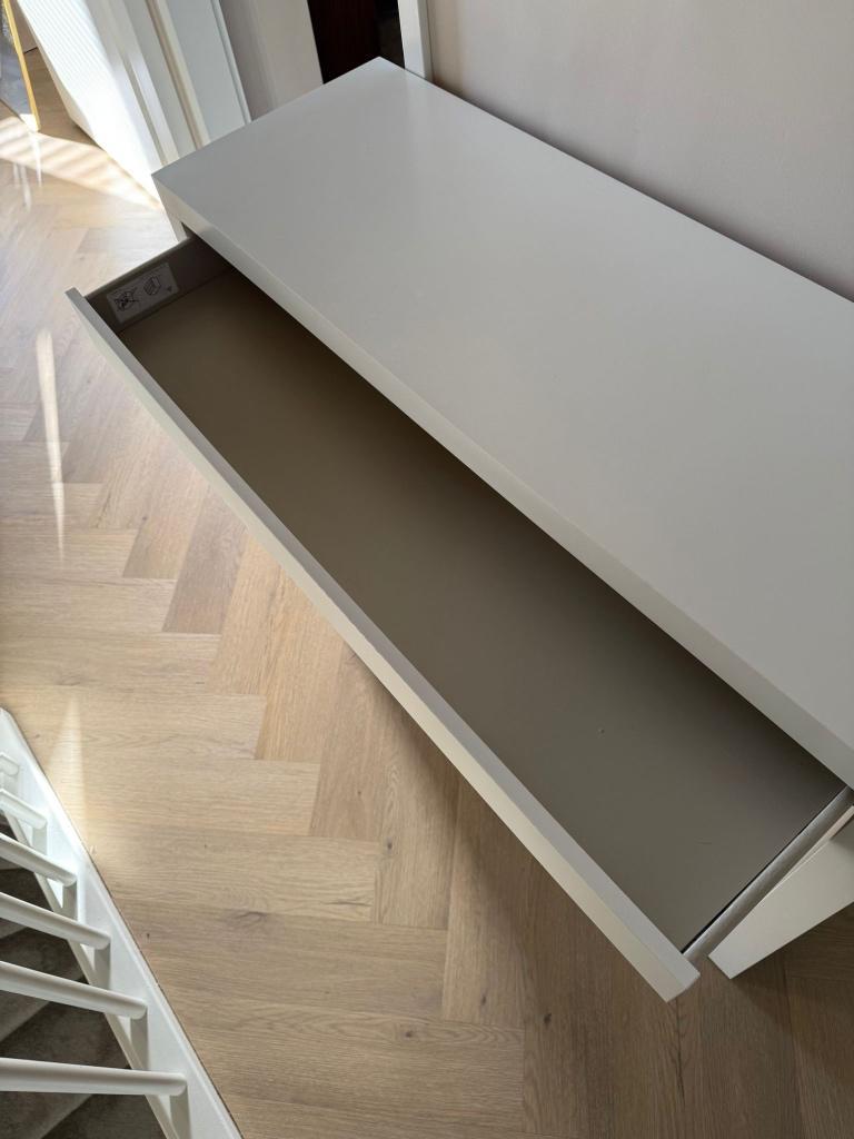Ikea malm kaptafel, nieuwprijs €99,99. Nu gratis af te halen. De bodemplaat van de lade is wat ingezakt, eventueel eenvoudig vast te zetten met een spijkertje