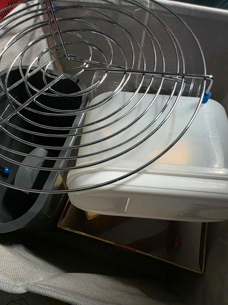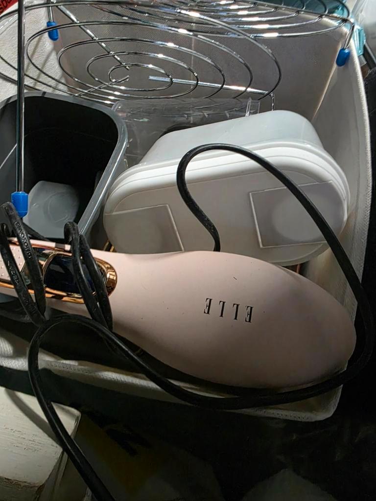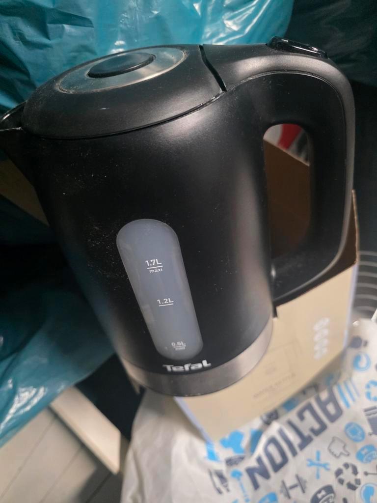 Een verzameling diverse keukenartikelen, waaronder een waterkoker, en andere items. De staat varieert, bekijk de foto''s voor details.