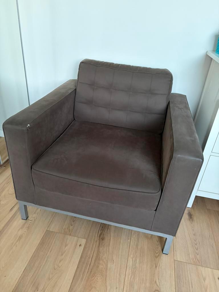 Gratis af te halen. Grote fauteuil ca 90x 90 cm, zitting is nog prima. Kleine beschadiging aan de leuning.