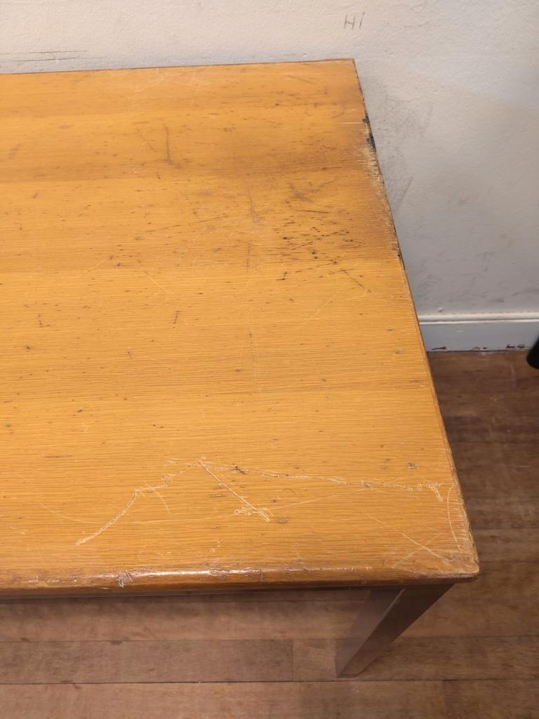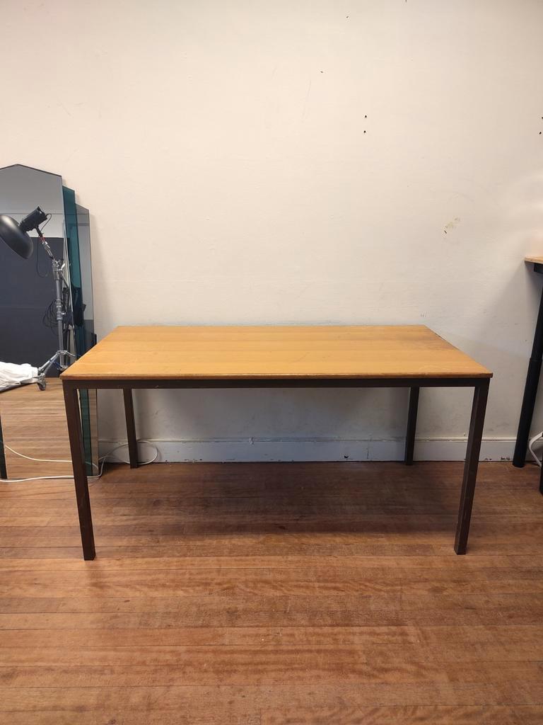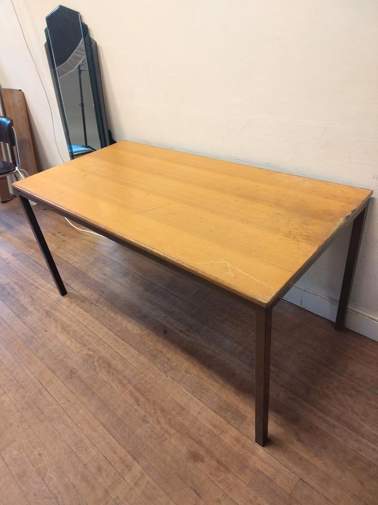 Stevige knutseltafel met duidelijke gebruikssporen. 150Cm breed, 75cm diep en 75,5cm hoog. Moet weg omdat ik uit mijn huidige werkruimte moet. Let op: het onderstel kan niet uit elkaar en moet als een