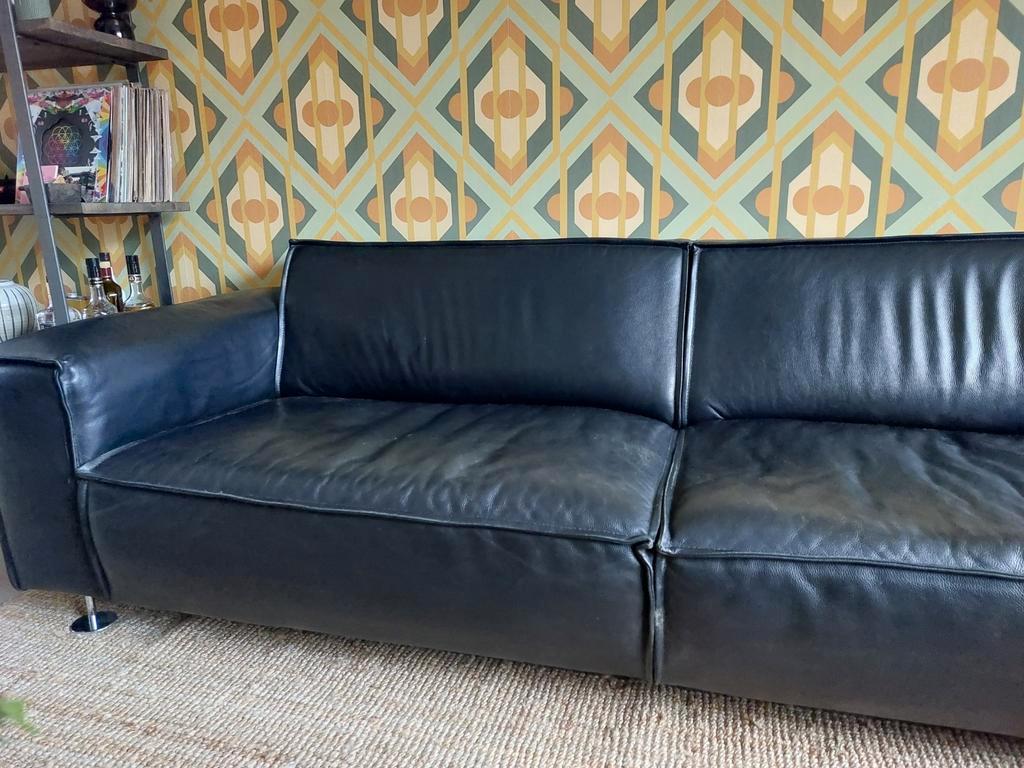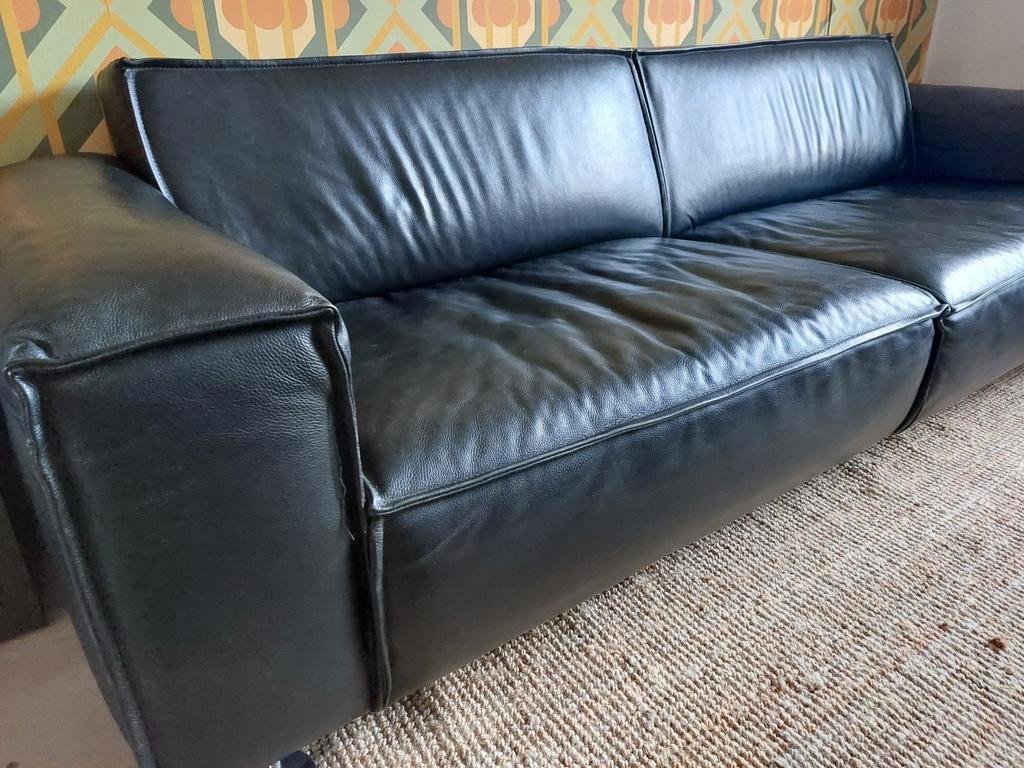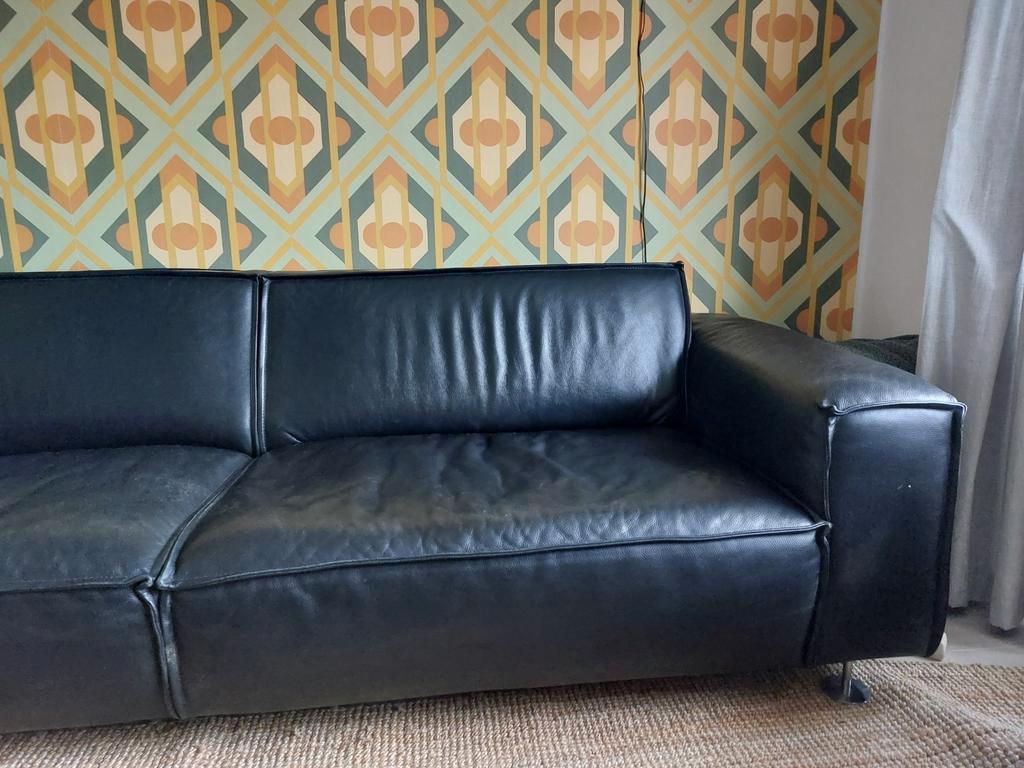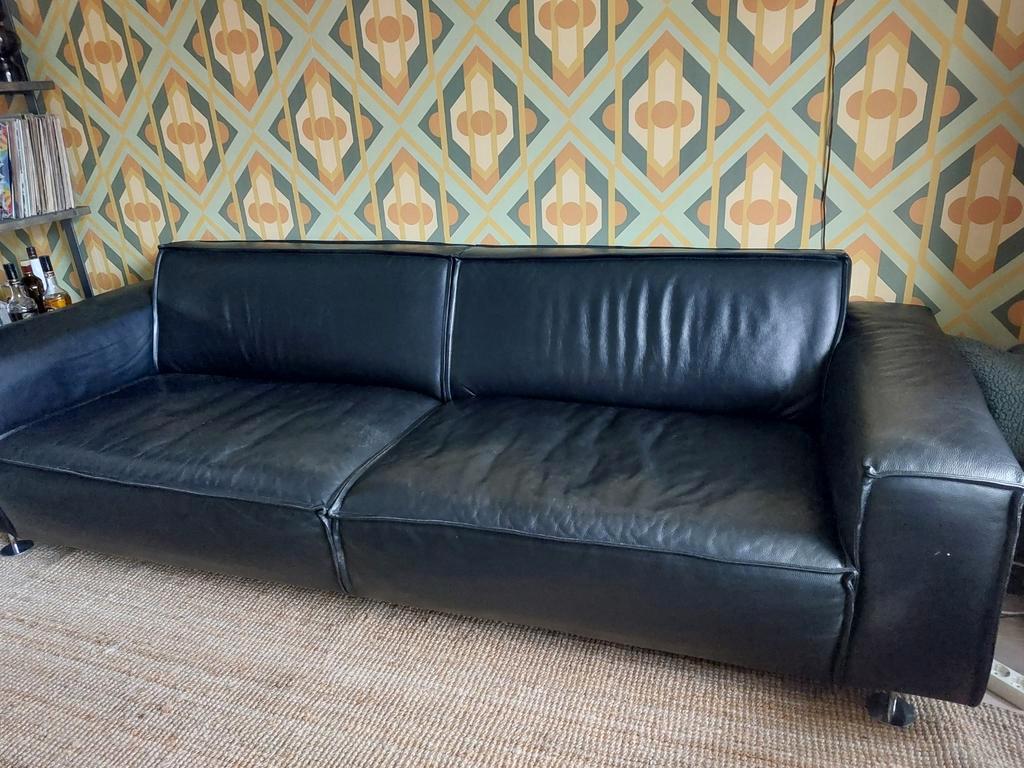 Gratis zwarte leren bank, ruime 3 zits. Niet door gezakt, leer is nog netjes