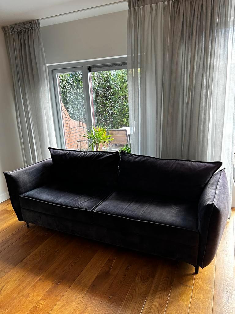 Mooie urban sofa driezitsbank in donkergrijze kleur. De bank is in nette staat en biedt comfortabele zitplaatsen voor drie personen. Ideaal voor in de woonkamer. Stijlvol en tijdloos design. Moet weg