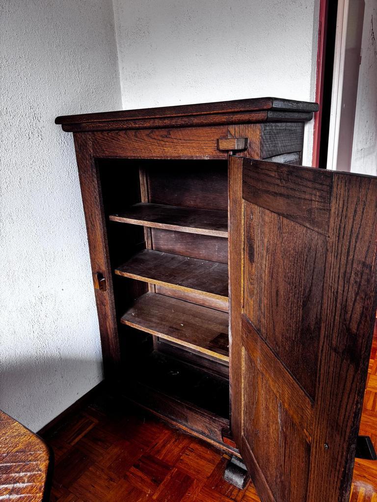 Donker eiken tuigkast met legplanken breedte 100 cm diepte 47 cm hoogte 150 cm gaat weg ivm verhuizing gedateerd en gebruikt, wel heel alleen deze zaterdag (7-2) ophalen!