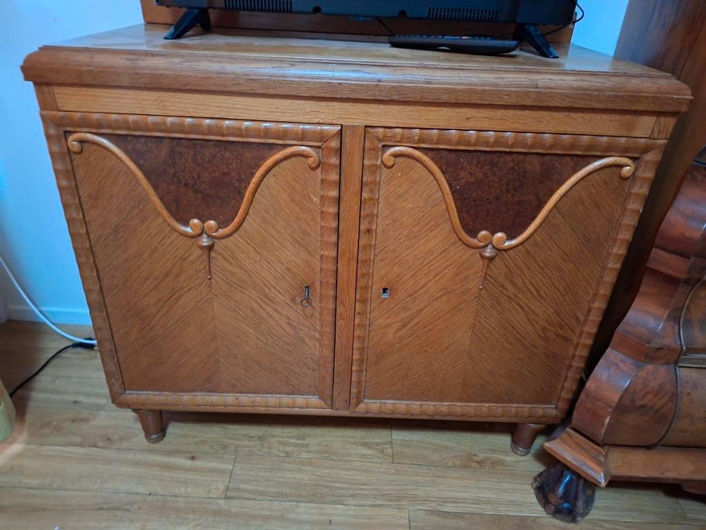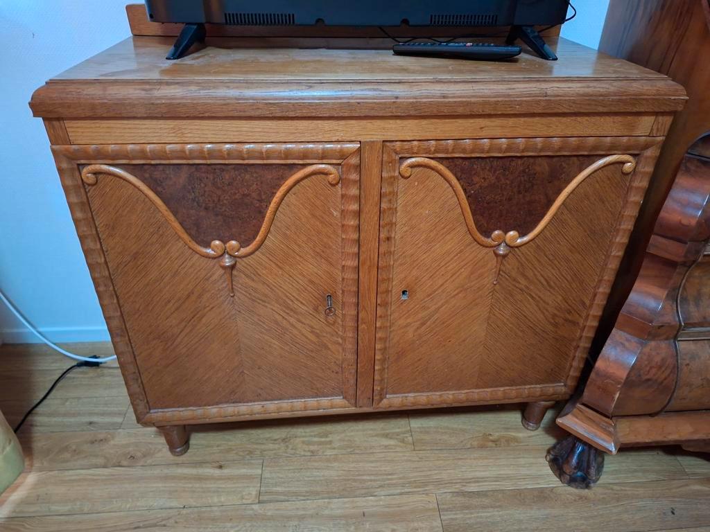 Gratis afhalen zo spoedig mogelijk, dit mooie antiek houten kastje met houtgesneden versiersels erin. Het linker deurtje krijg ik open met de sleutel, maar het rechter deurtje krijg ik op dit moment n