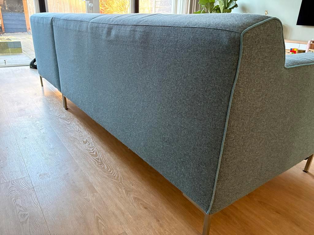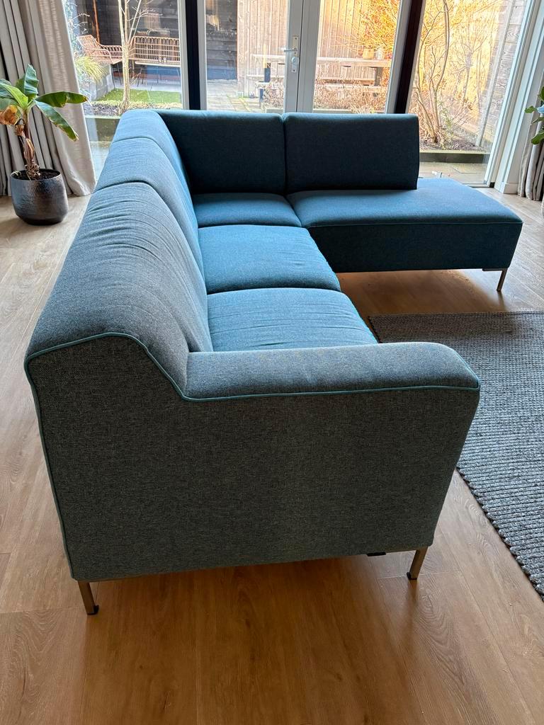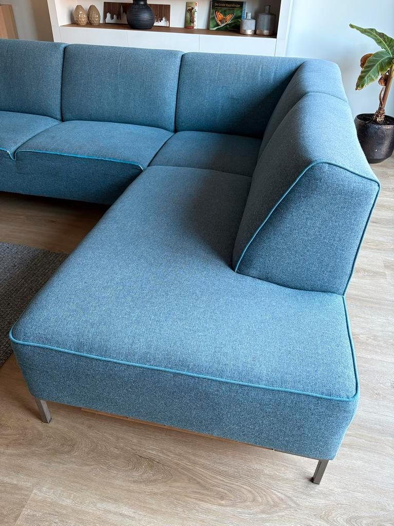 Gratis af te halen, montel hoekbank. Bank zit nog perfect en heeft nergens doorzit plekken. Wel vlekken en beschadigingen op de randen, zie foto’s. Achterste deel heeft lichte verkleuring.