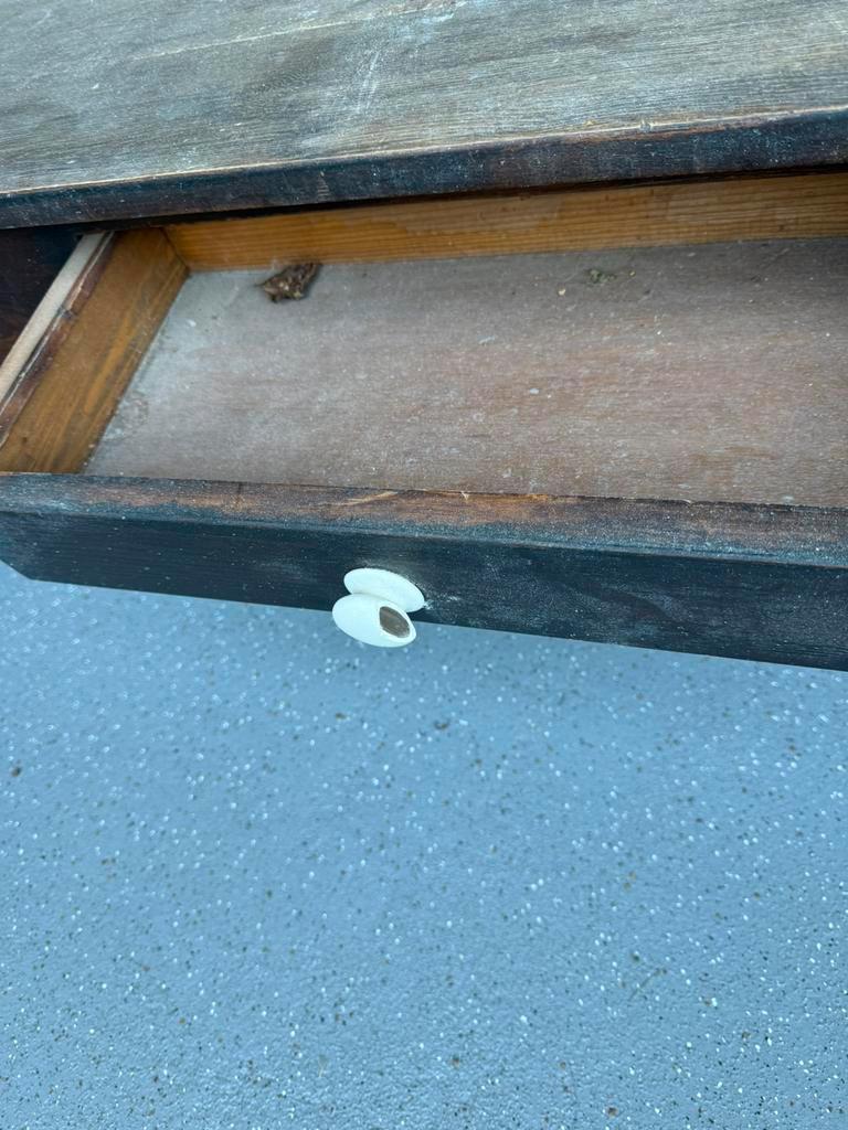 Kleine sidetable breedte 130 hoogte 44 diepte 43 knop van de la is kapot moet geschuurd worden