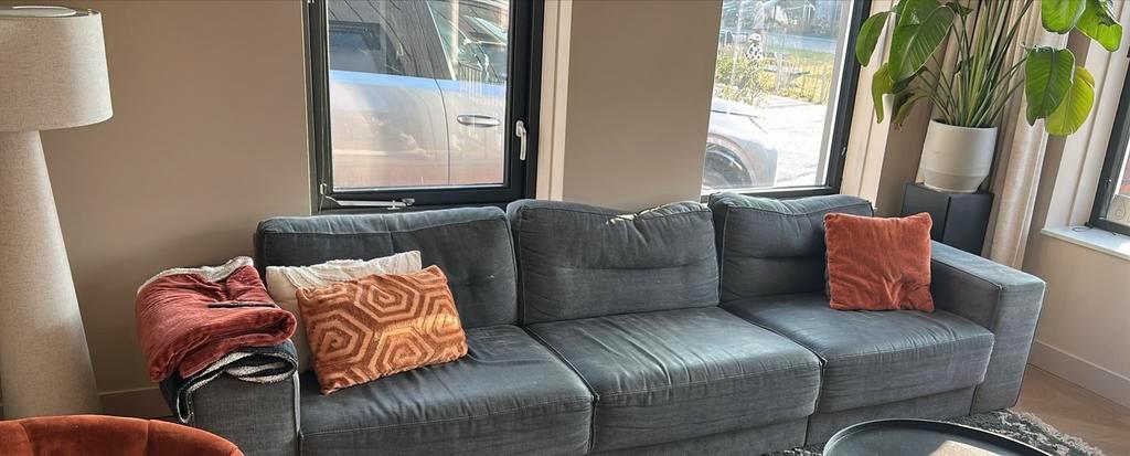 De bank is gebruikt, maar kan zeker nog een ronde mee. Hier en daar wat vlekken te zien en de rechter leuning is doorgezakt. Zo snel mogelijk ophalen.