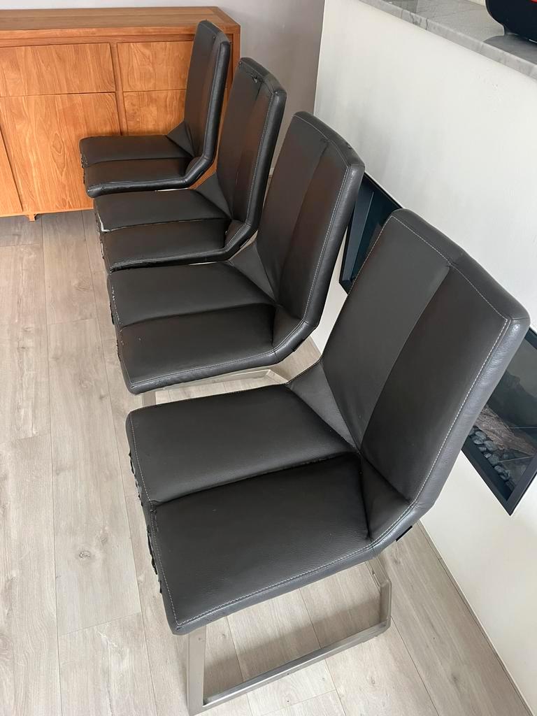 Gratis af te halen. Aan de voorkant en bovenkant is het leer een beetje afgebladderd, zie laatste twee foto’s. Ze zitten nog uitstekend.