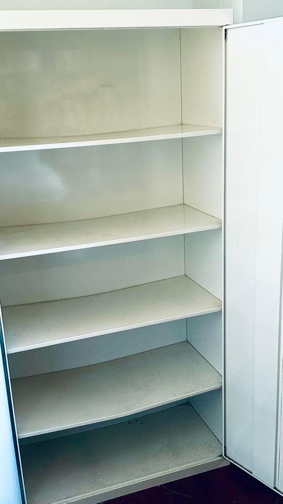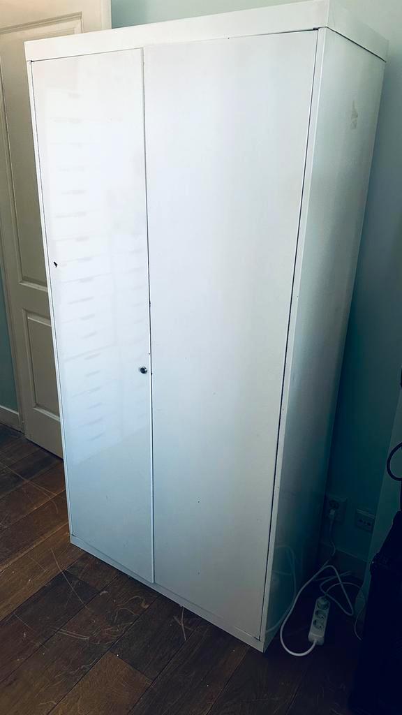 Kantoorkast, wit hoogglans met beschadigingetjes. Gratis op te halen in amsterdam. Hoogte 180 cm breedte 90 cm diepte 50 cm