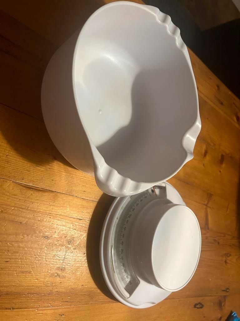 Analoge keukenweegschaal met een losse schaal. Ideaal voor het afwegen van ingrediënten tijdens het koken en bakken. De schaal is afneembaar en makkelijk schoon te maken. Gaat weg wegens overcompleet.