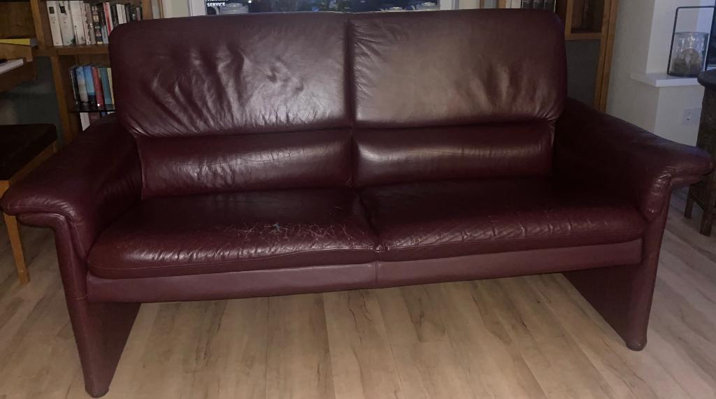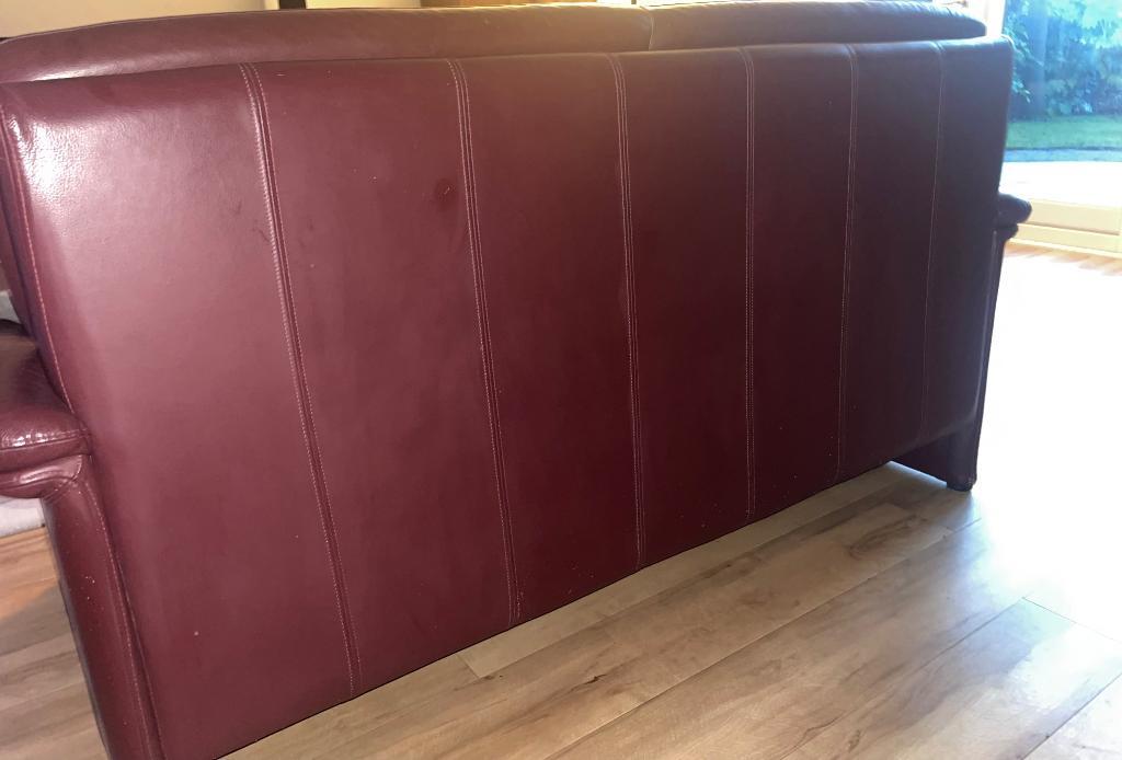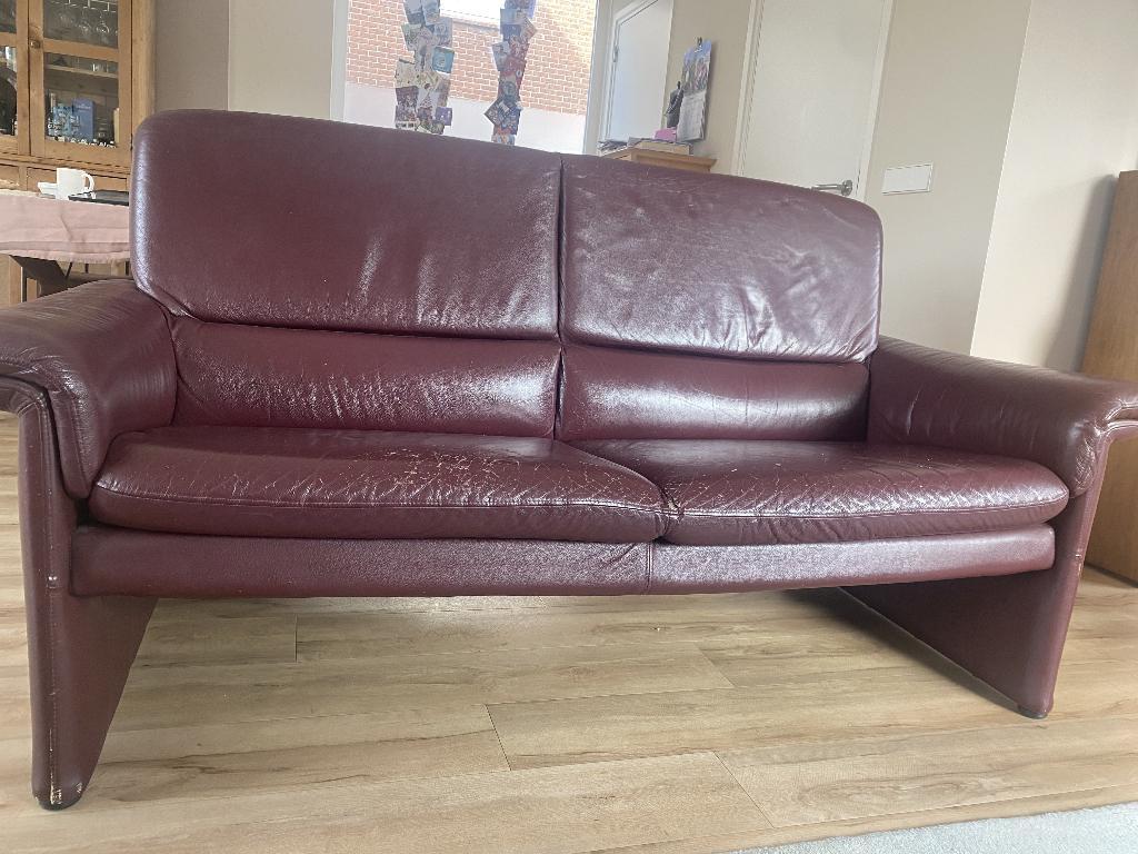 Twee bordeauxrode lederen 2.5 Zits banken gratis af te halen - castricum bxhxd 183x94x84