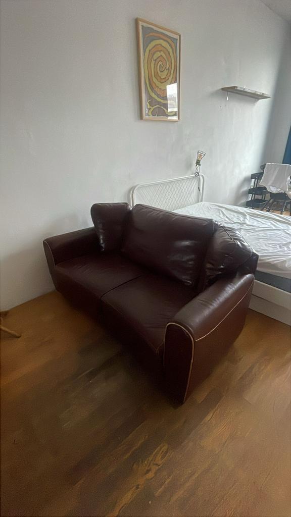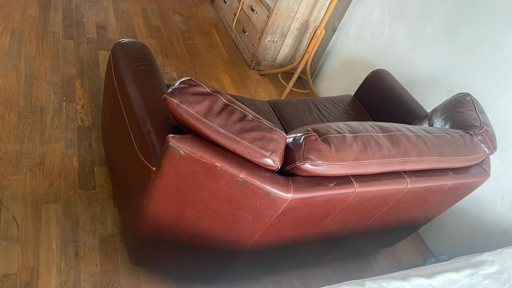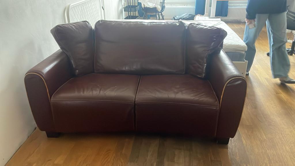 Rood-bruin nep leren bankje 2 personen. Gratis op te halen in delft!