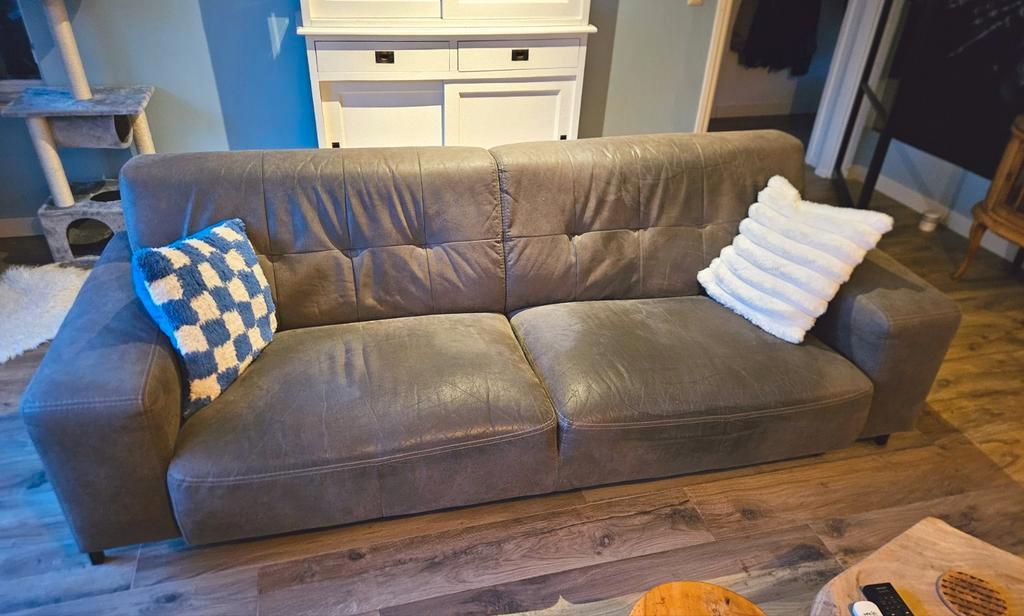 Gratis af te halen een 2 3n 3 zits combinatie bank. Afmetingen grote bank l 330 x d 90 x h 80 cm. Kleinere bank l 170 x d 90 x h 80. Hebben wat vlekjes en op de grote zijn de kussens iets ingezakt. Mo