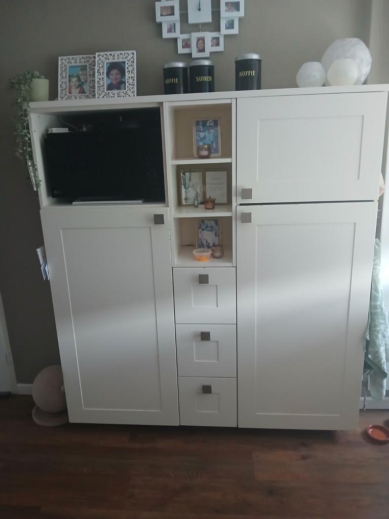 Gebruikte hoekkeuken in wit/crème kleur. Gekocht in 2009 bij middelkoop culemborg . Hoekopstelling met een apparatenkast. Zit een goed werkende keramische kookplaat in maar ziet er niet zo mooi meer u