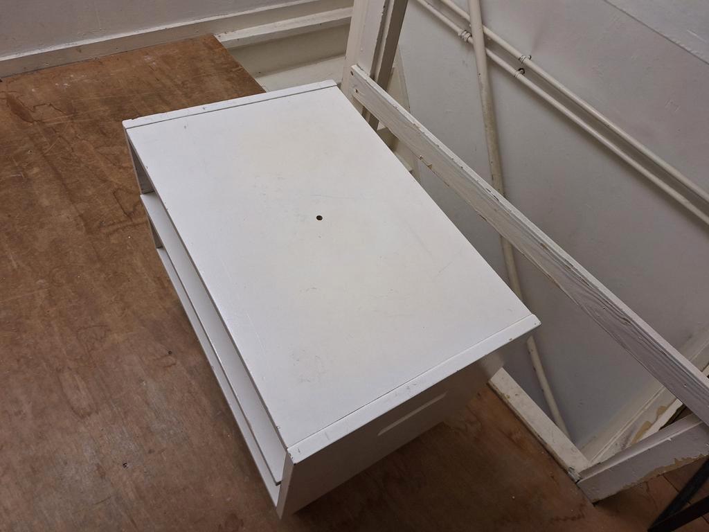 Klein tv meubel met wat beschadigingen. Afmetingen: breedte 60 cm, diepte 39 cm, hoogte 48 cm. Ideaal voor een kleine ruimte.