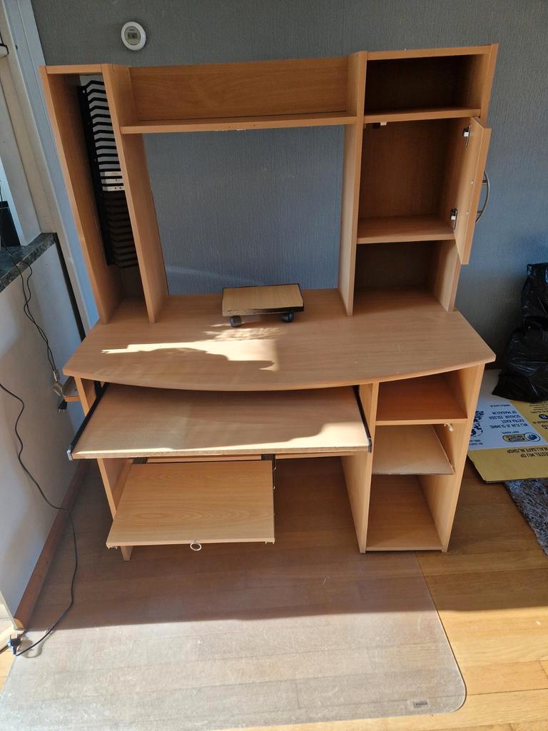 Gebruikt computer meubel. Ideaal voor een studentenkamer of thuiskantoor. Het meubel heeft wat gebruikerssporen, maar is nog in goede staat en kan nog prima een ronde mee. Biedt voldoende ruimte voor