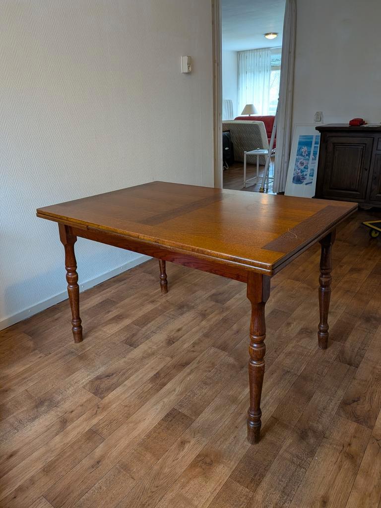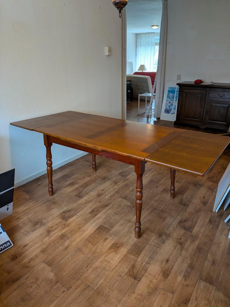 Wegens een verhuizing mag onze eettafel gratis opgehaald worden. Het gaat om een stevige, klassieke tafel die uitschuifbaar is. Afmeting: breed: 84.5 Cm lang: 203 cm uitgeschoven 124 cm ingeschoven h