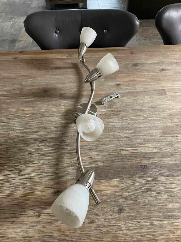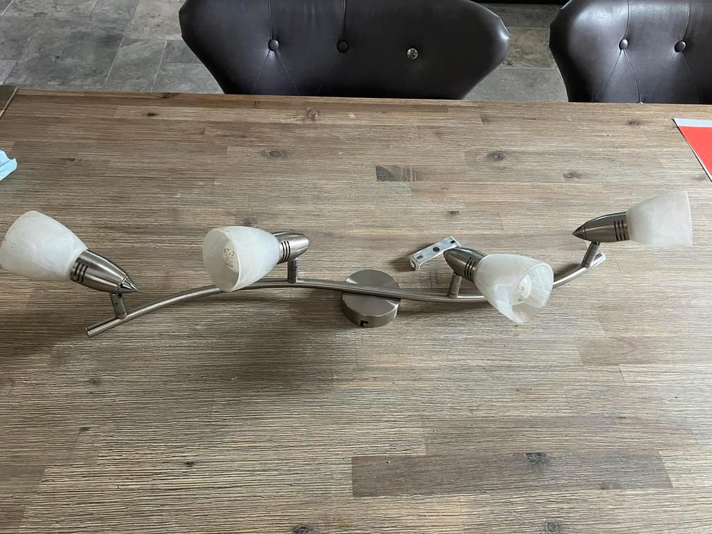 Gratis af te halen. Plafond lamp met 4 spots. Rvs met melkglas.