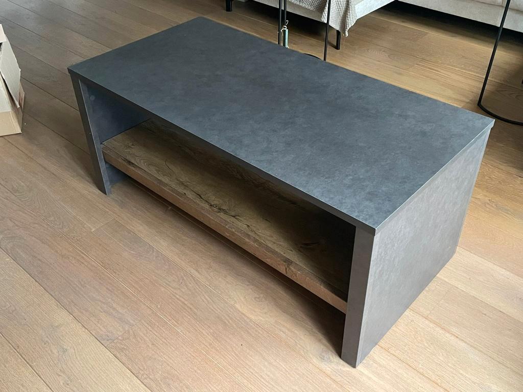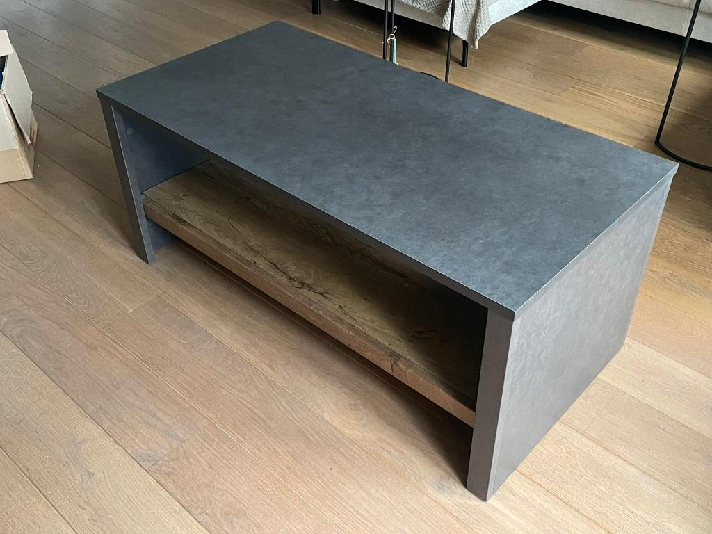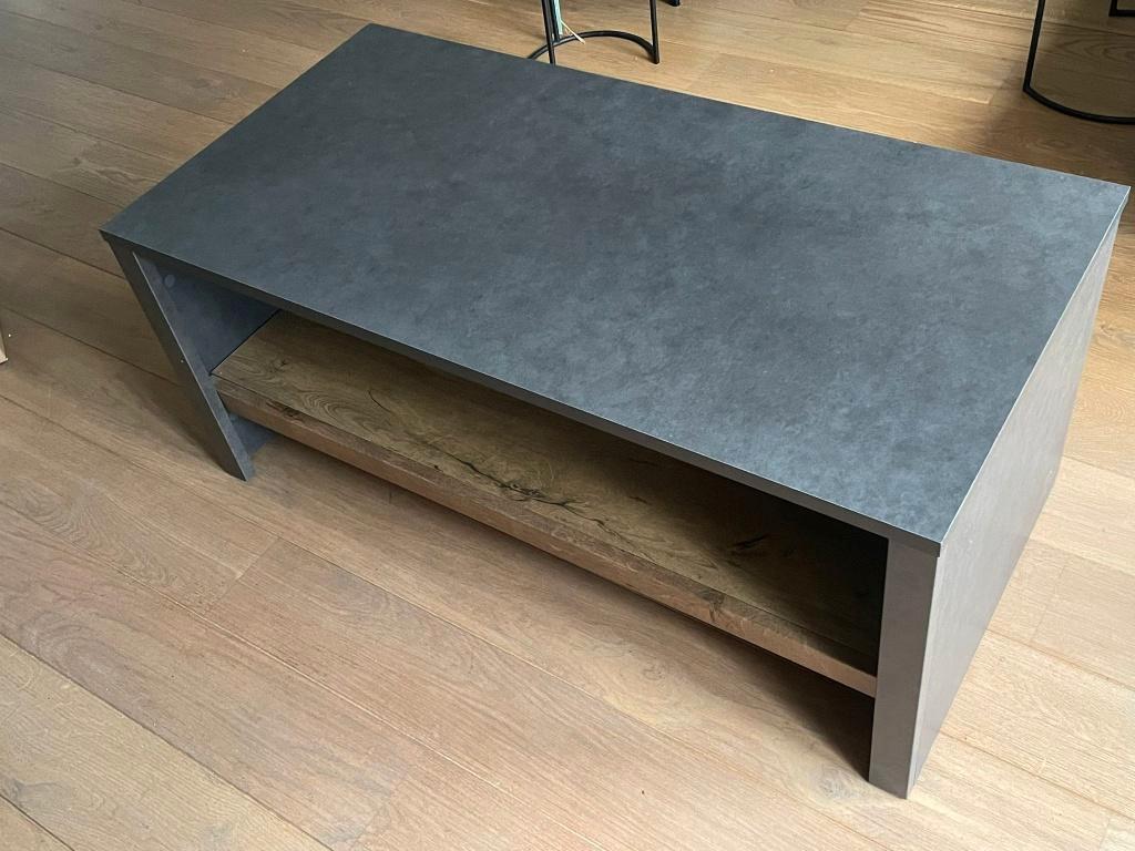 Zo goed als nieuw, maar de tafel mag gratis weg. - Kleur: antraciet (bovenblad & zijkanten) + hout (onderblad) - vorm: rechthoek - afmetingen: 60x120x52 (lxbxh in cm) ophalen in alblasserdam