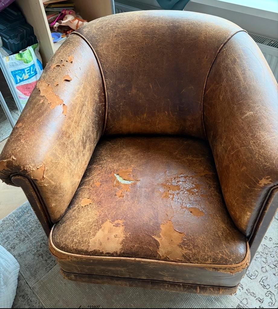 Gratis chesterfield club fauteuil. De fauteuil moet opnieuw bekleed worden. Staat op de begane grond, dus makkelijk op te halen.