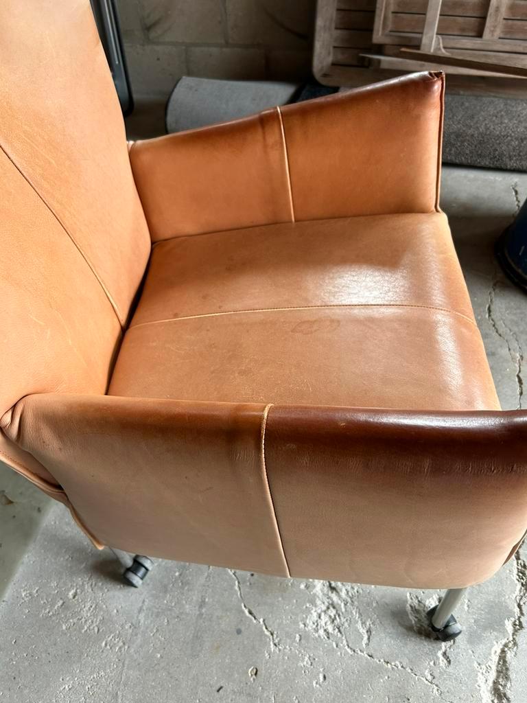 De rugleuning van de leren stoelen was verstelbaar, maar dat werkt niet meer. Het leer is niet kapot, maar wel gebruikt