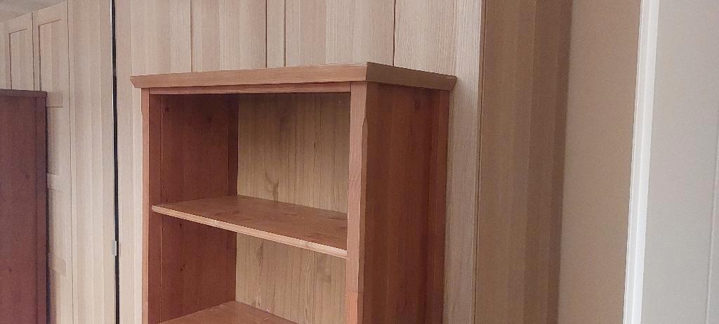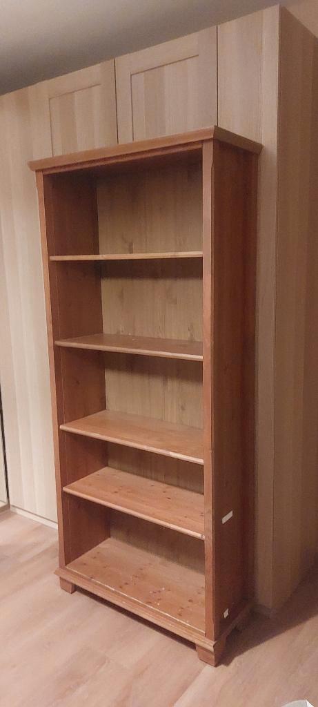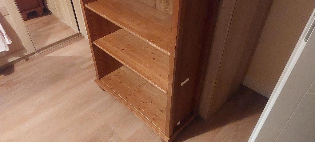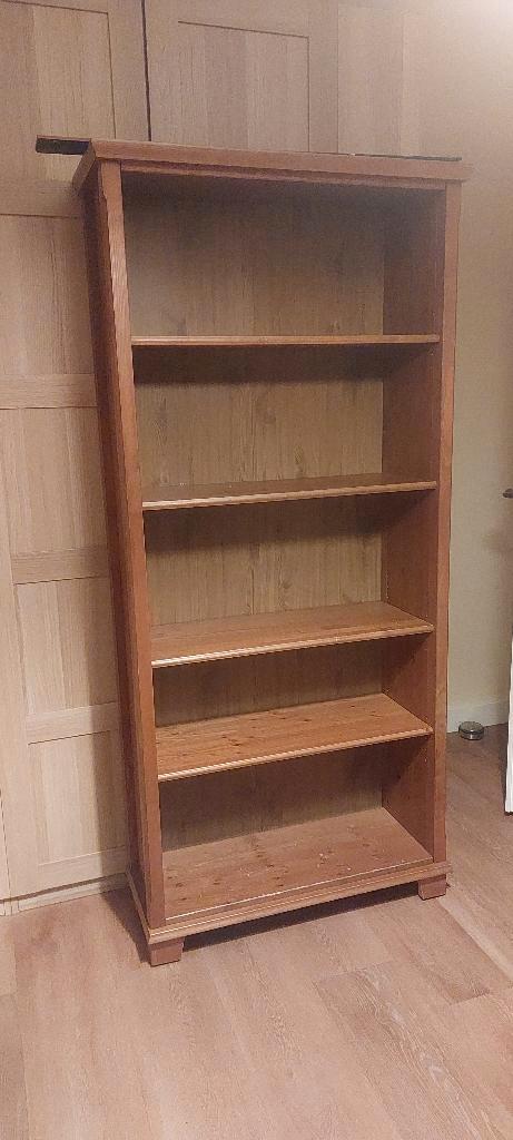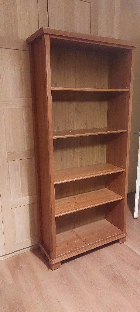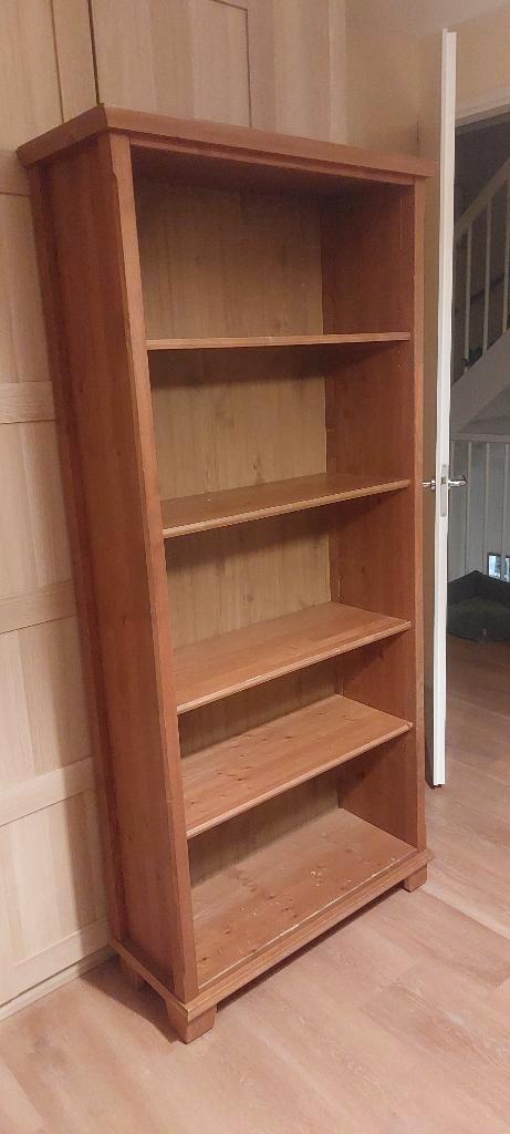 Stevige billy boekenkast met 3 losse verplaatsbare planken en 1 vaste plank. Grenen look uit een oudere billy serie. Degelijke stevige achterkant (geen plaatje). Op vierkante pootjes.