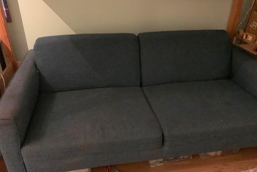 Gratis op te halen op 6 februari: tweezitsbank van goossens, model designer. Grofgeweven turqoisekleurige stof (donker blauw groen). Redelijke staat, er zitten vlekken op dus mag even schoongemaakt wo