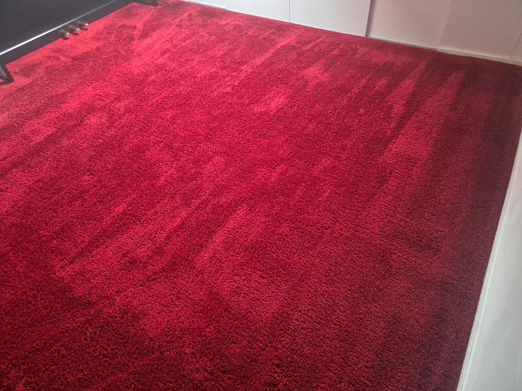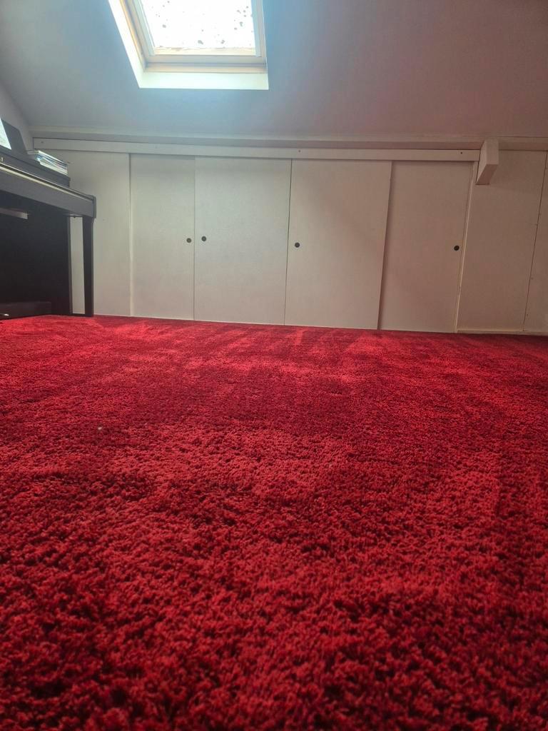 Rood, hoogpolig tapijt 3x5m (15m2), incl. vilt ondervloer