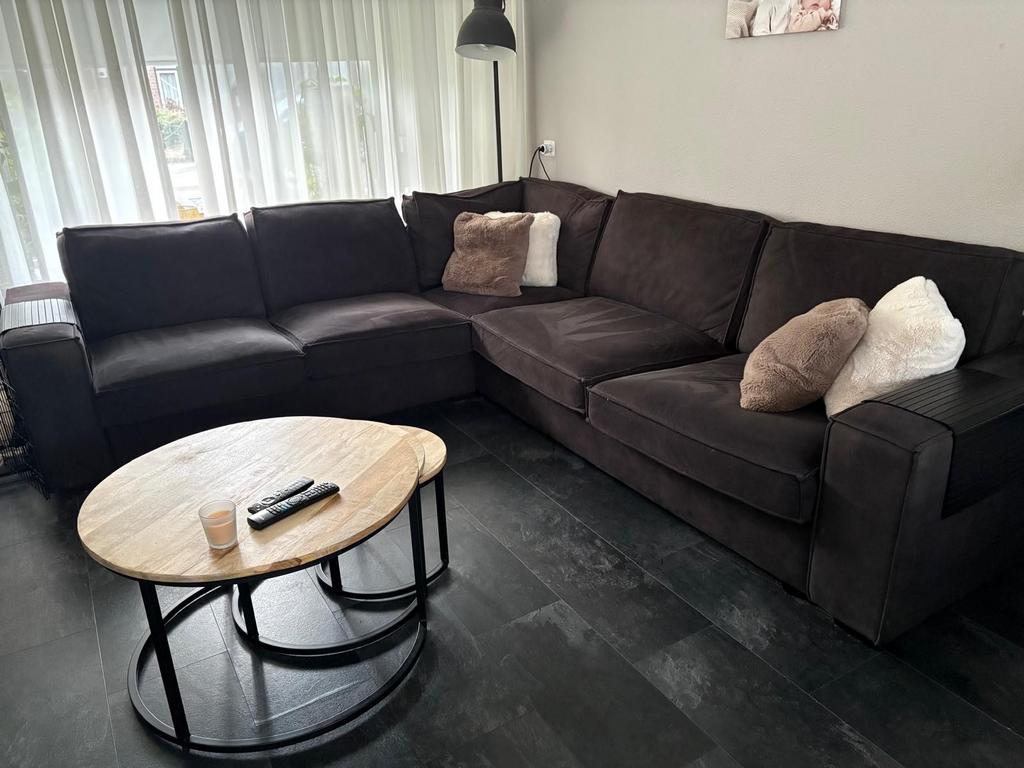 Gratis hoekbank af te halen deze vrijdagmiddag. De bank is 260 cm breed en 280 cm diep, met een hoogte van 90 cm.