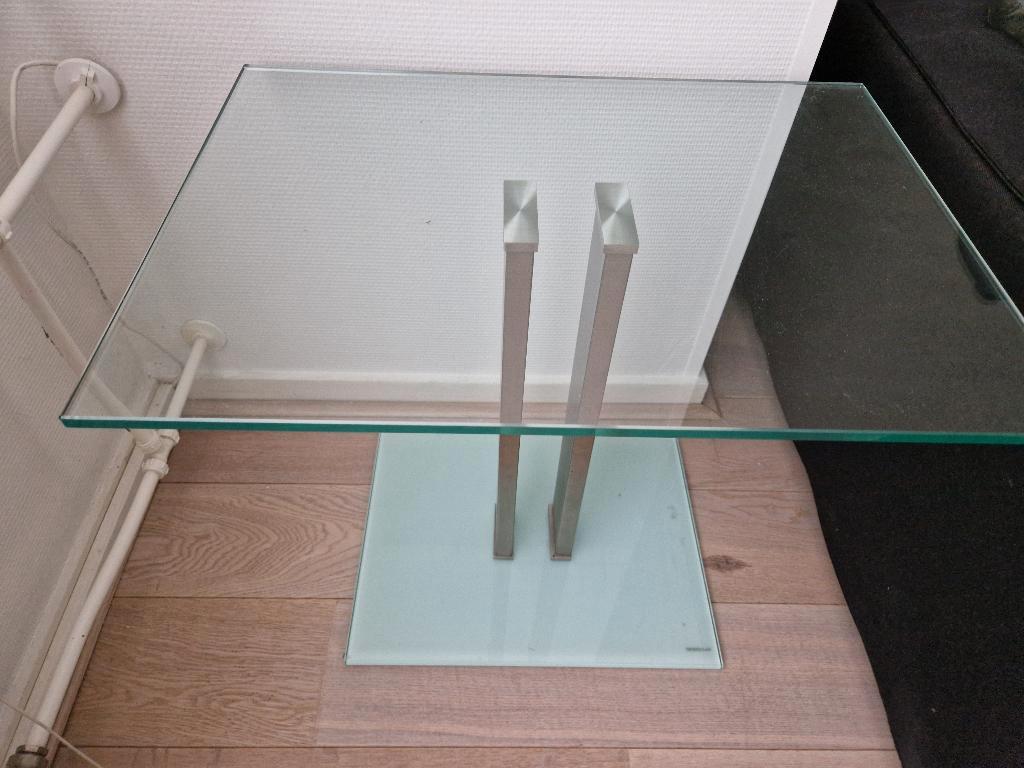 af te halen. Bijzettafel van glas 50cm hoog glasplaat 56cm bij 40cm