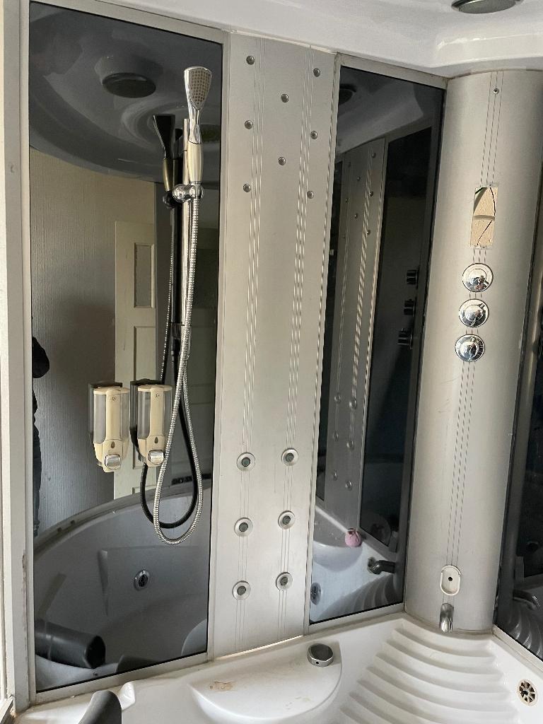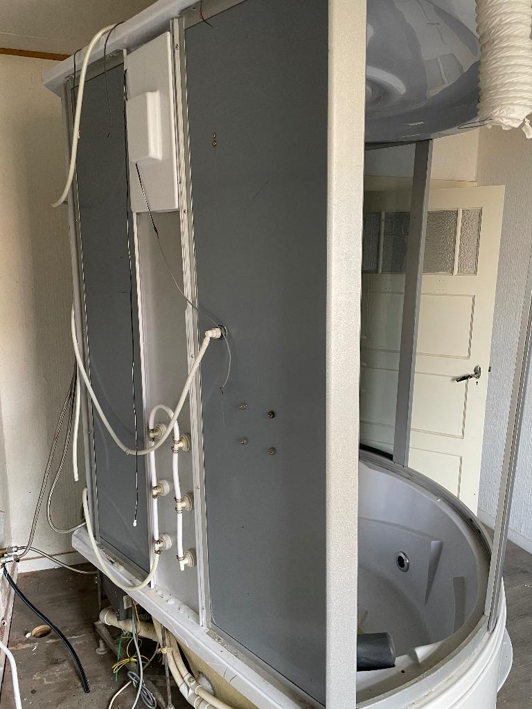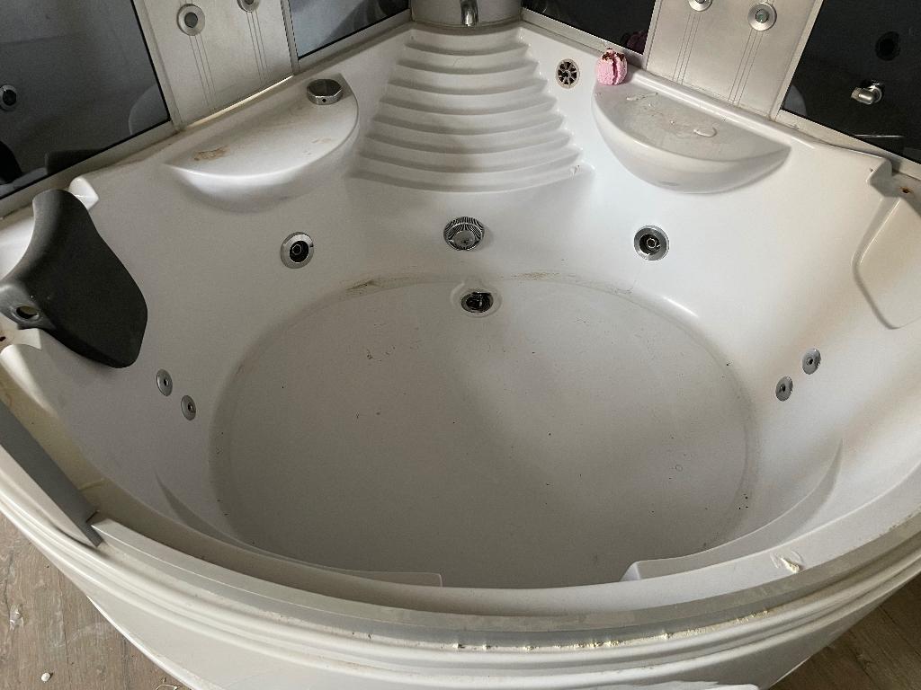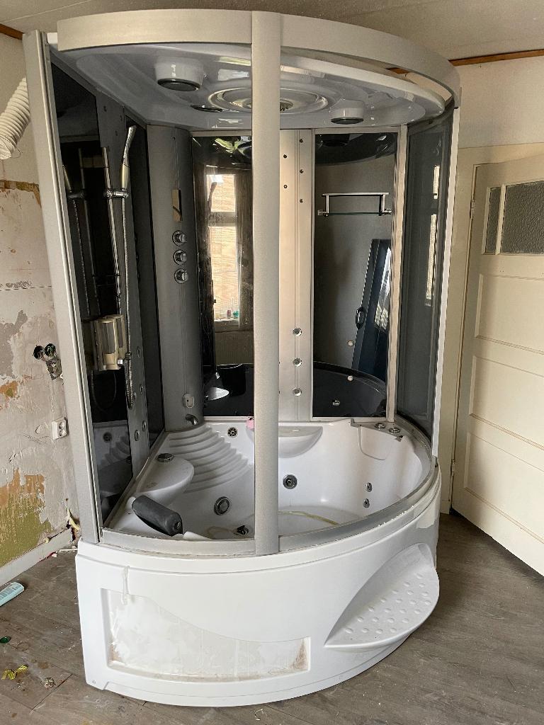 Een hoekbad met bubbels. Het bad is in onbekende staat en heeft een bubbelfunctie. Afemeting +/- 225 cm hoog x 150cm x 150 cm. Gratis af te halen in gaanderen op maandag 9 februari overdag.