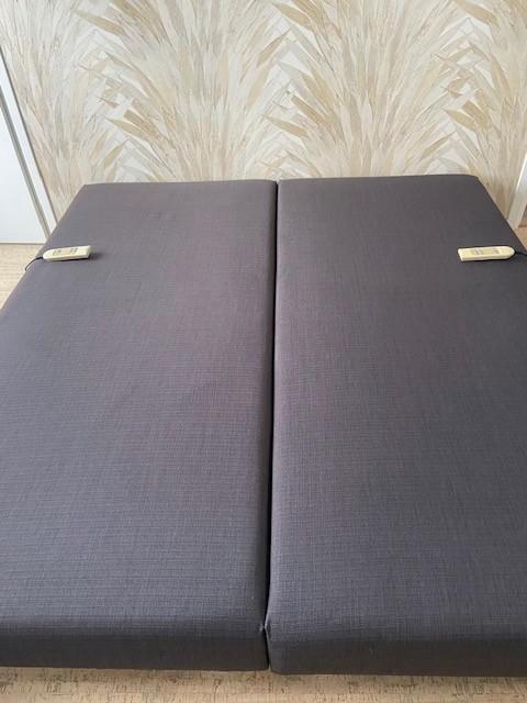 2 individueel verstelbare boxen (onderstel boxspring). Maat per box: 90 x 200. Merk: velda kleur: antraciet de boxen kunnen los (2 x 1 persoons bed) of aan elkaar worden neergezet, dus kan een bed van
