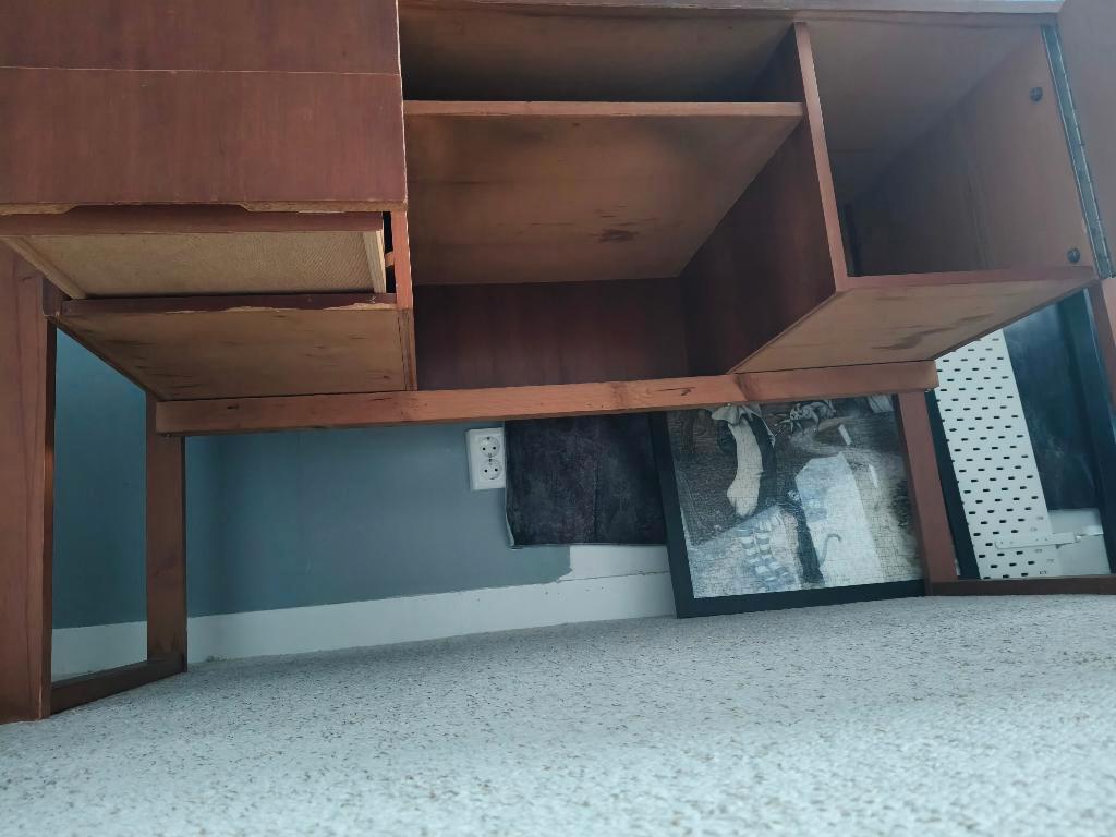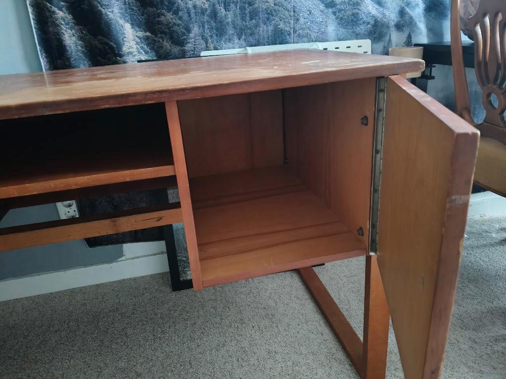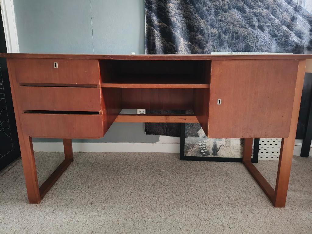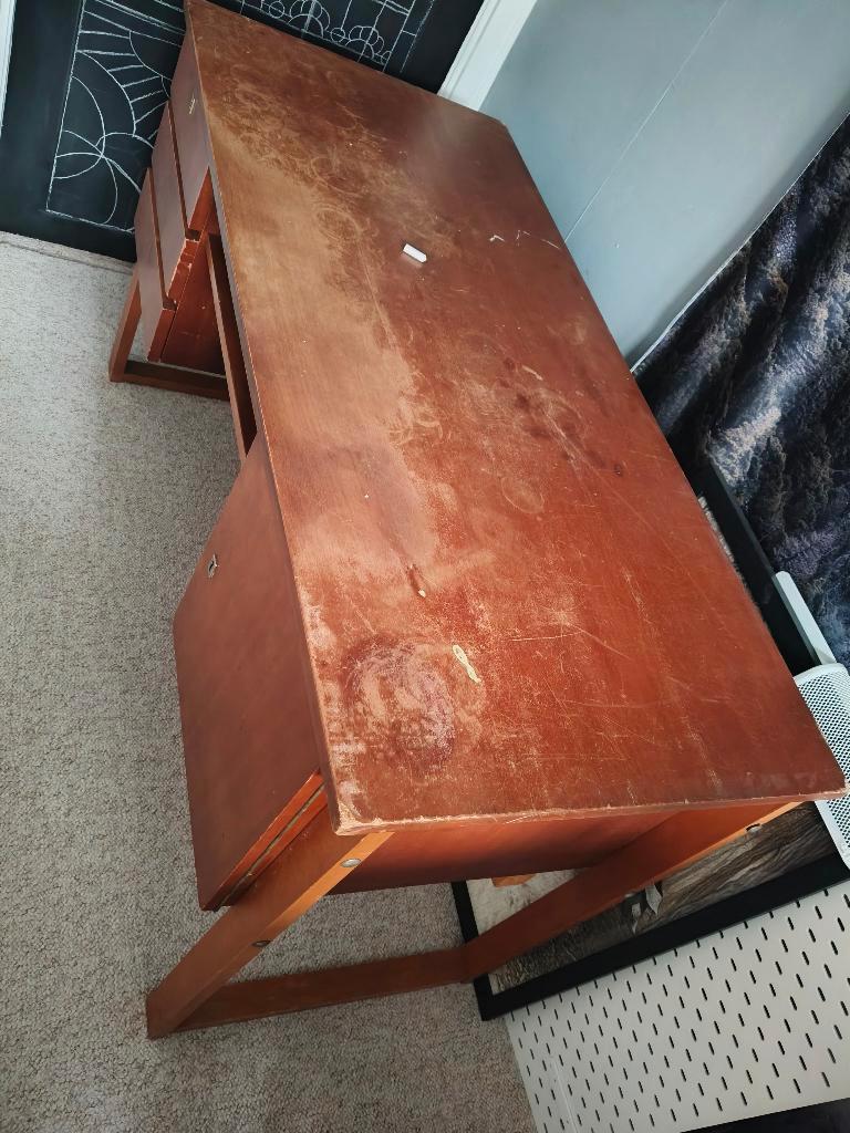 Een oud handgemaakt bureau. Heeft een opknap beurt nodig. Afmetingen: blad: 131x60 cm met poten 75 cm zonder poten 42 cm