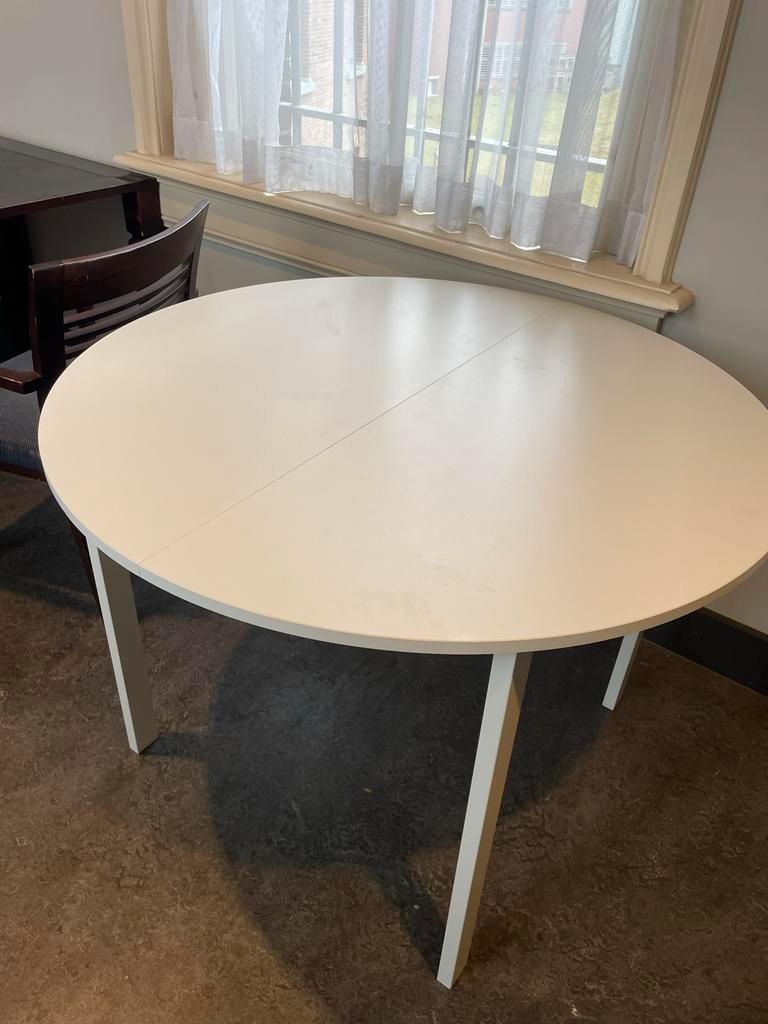 Witte ronde ikea tafel te koop. De tafel heeft een diameter van 107 cm en is ongeveer 1 jaar oud. In goede staat. Gratis op te halen. Zsm ivm opleveren kantoor. Zelf demonteren en tillen vanaf tweede