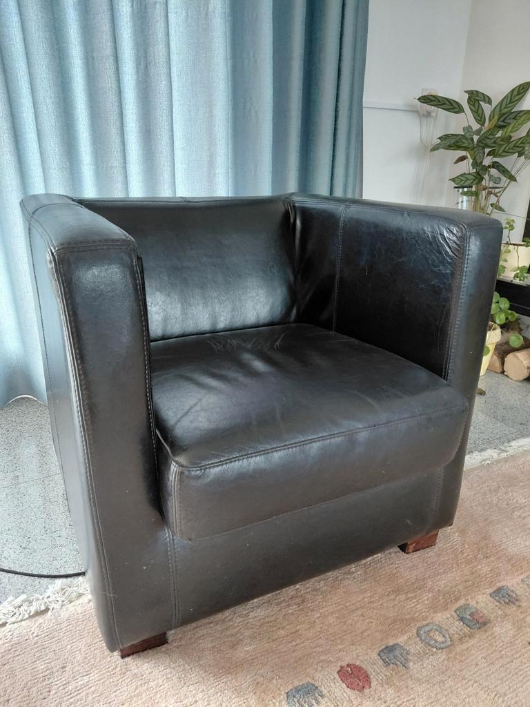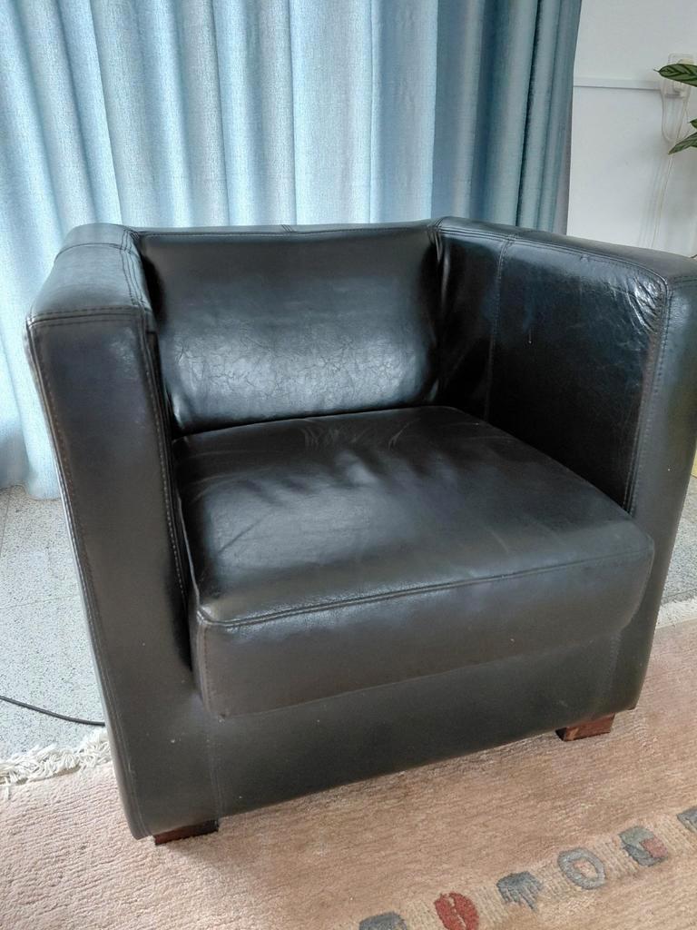 Twee mooie, zwart lederen feuteuils gratis!!!