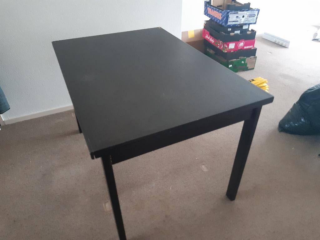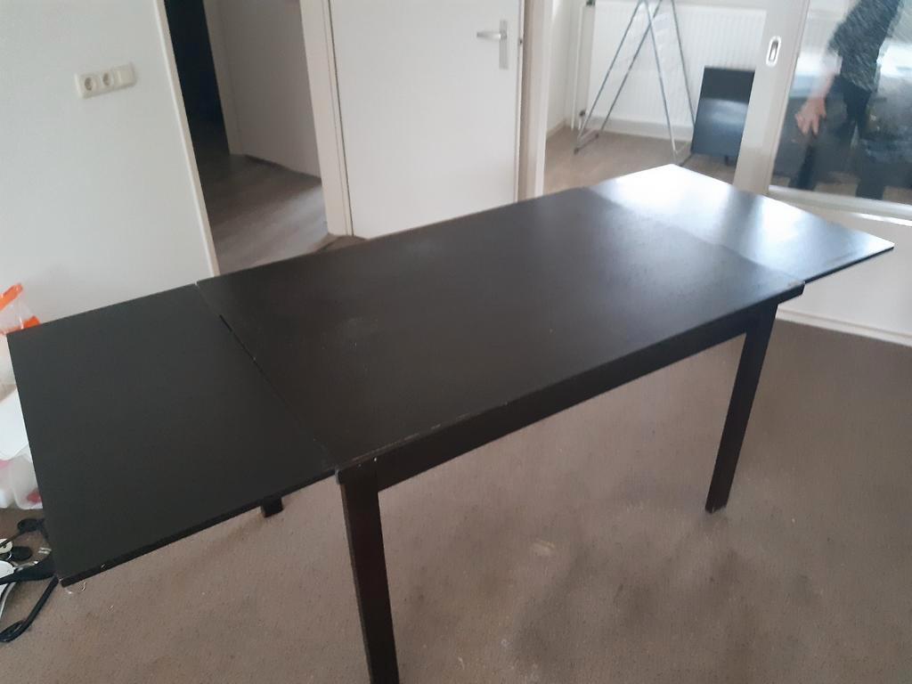 Prima eettafel 82x120 cm uitschuifbaar 2x40cm langer , donker opgelegd blad met stevige poten