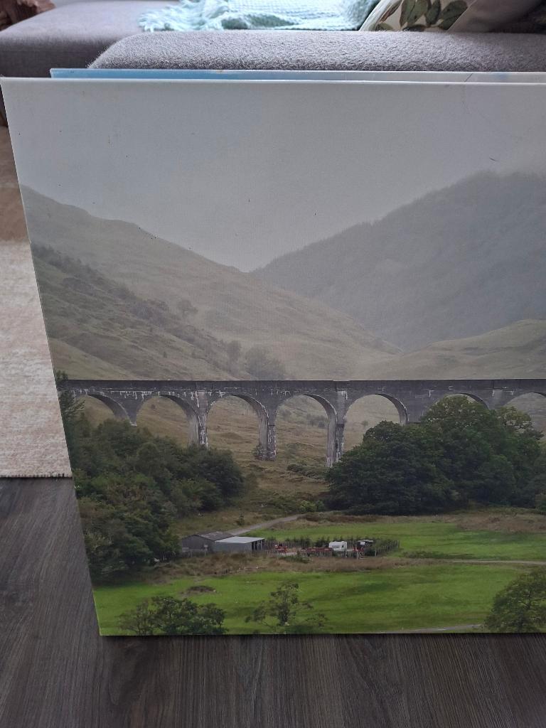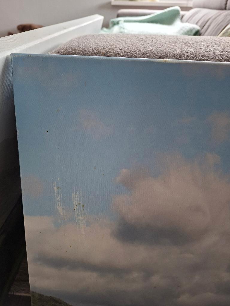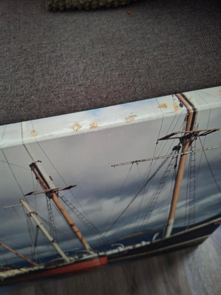 Afmetingen 80 breed en 60 lang op de bovenkant wat kleine plekjes want ze hebben in de kelder gestaan op het doek met de boot zit een veegje voor op