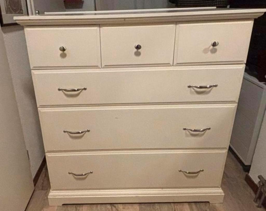 Mooie stevige ladenkast met hier en daar uiterlijke gebruikssporen de lades werken perfect een niet storend waterplekje