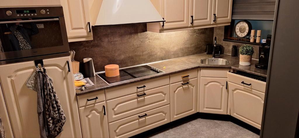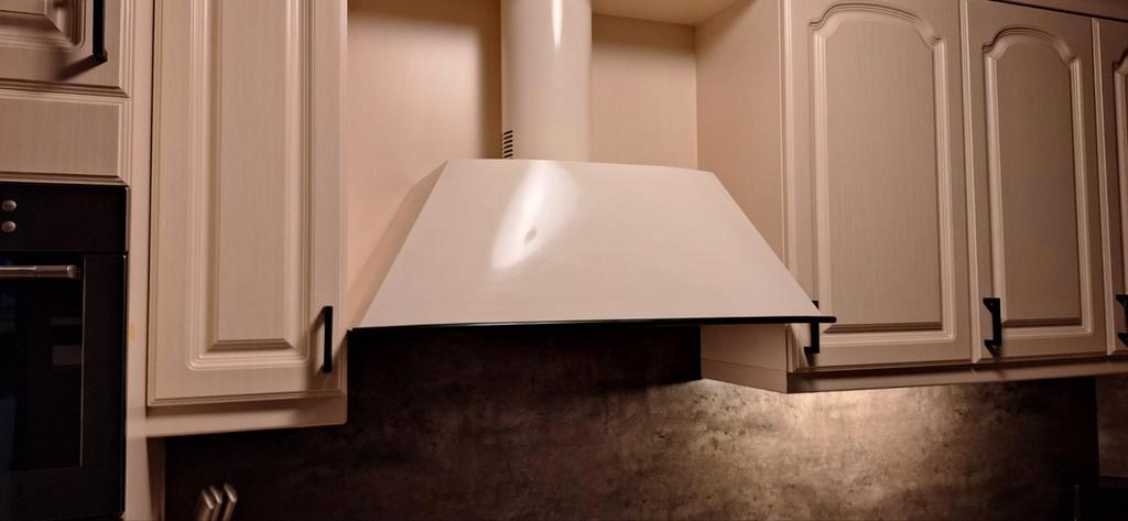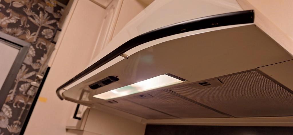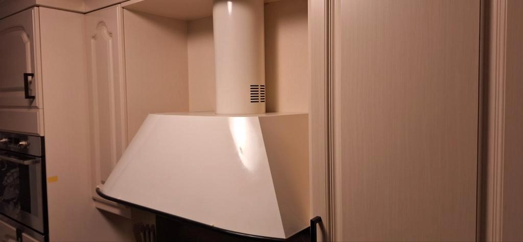 Apart ontwerp geen standaard model crème kleurige afzuigkap goedwerkend gaat weg wegens verandering keuken.