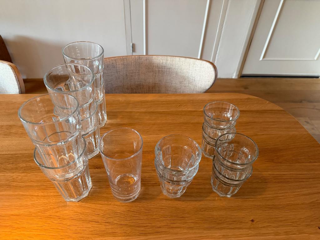 Gratis af te halen in amsterdam noord: 6 grote glazen 1 longdrink glas 6 kleine glazen ze zijn gebruikt, maar nog in goede conditie.