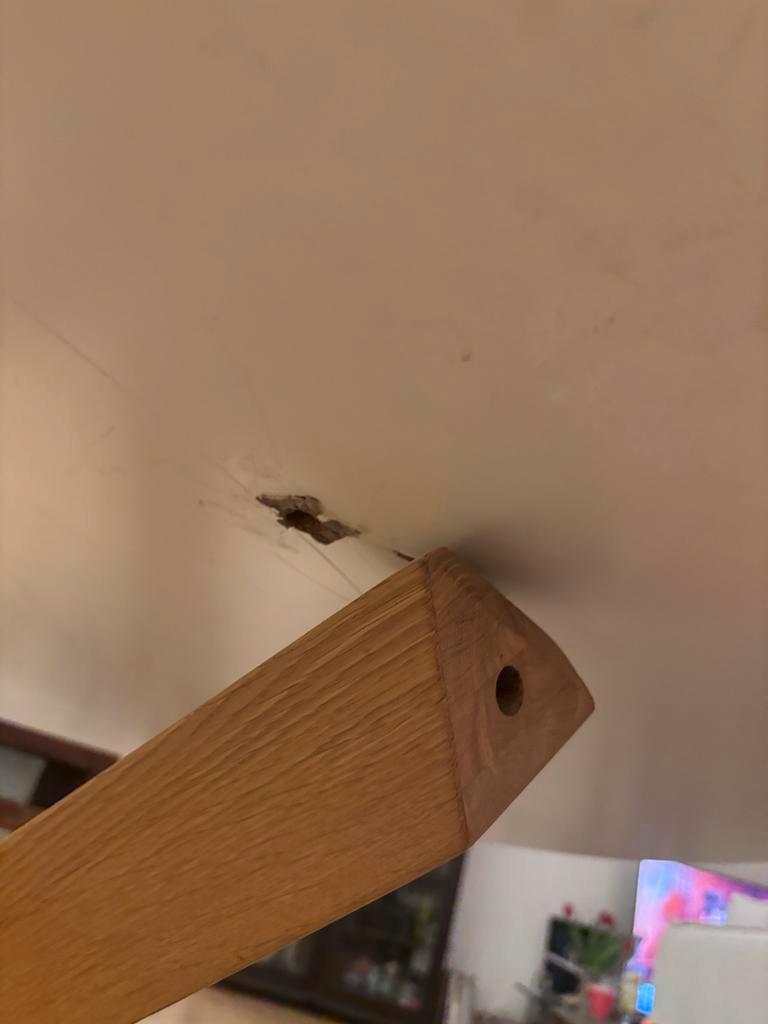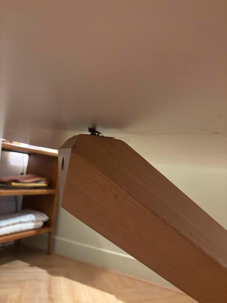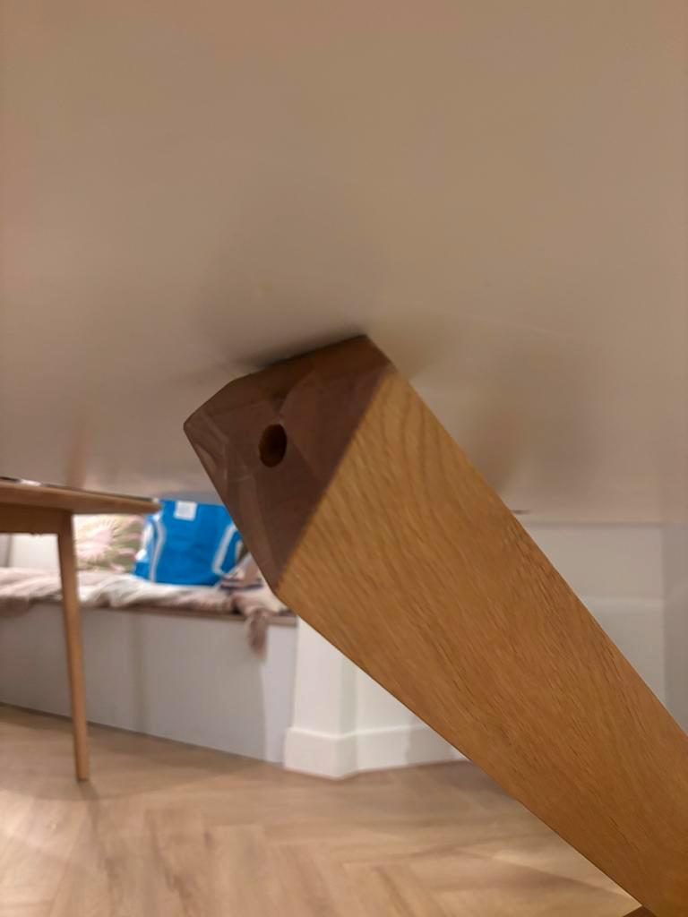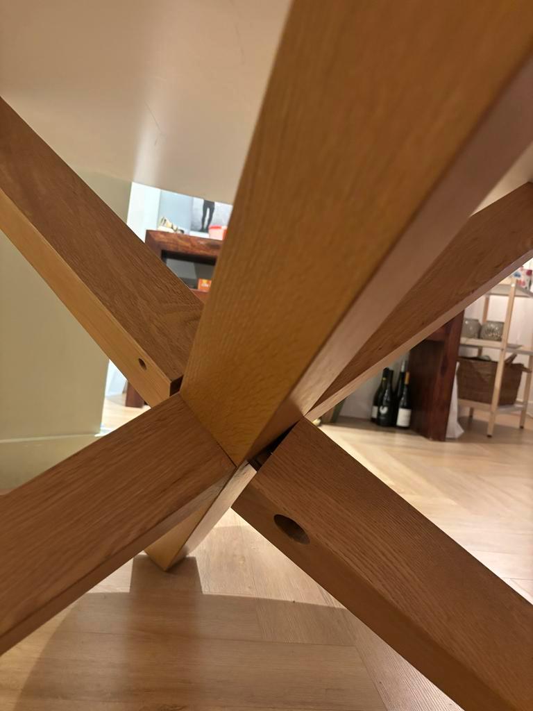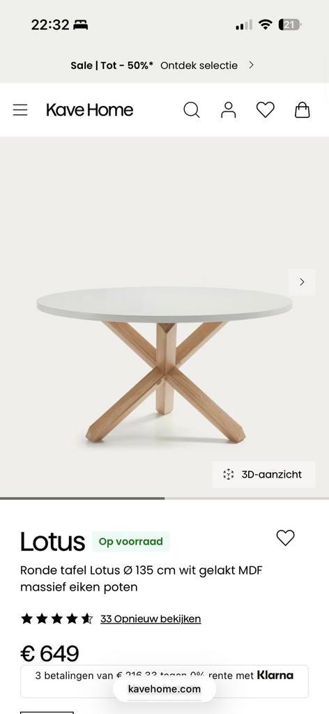 Eettafel lotus. Mooie ronde tafel met een diameter van 135 cm. De tafel is wankel en het blad ligt er niet goed op maar wel te fiksen als je handig bent.