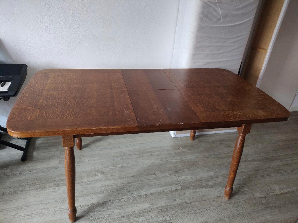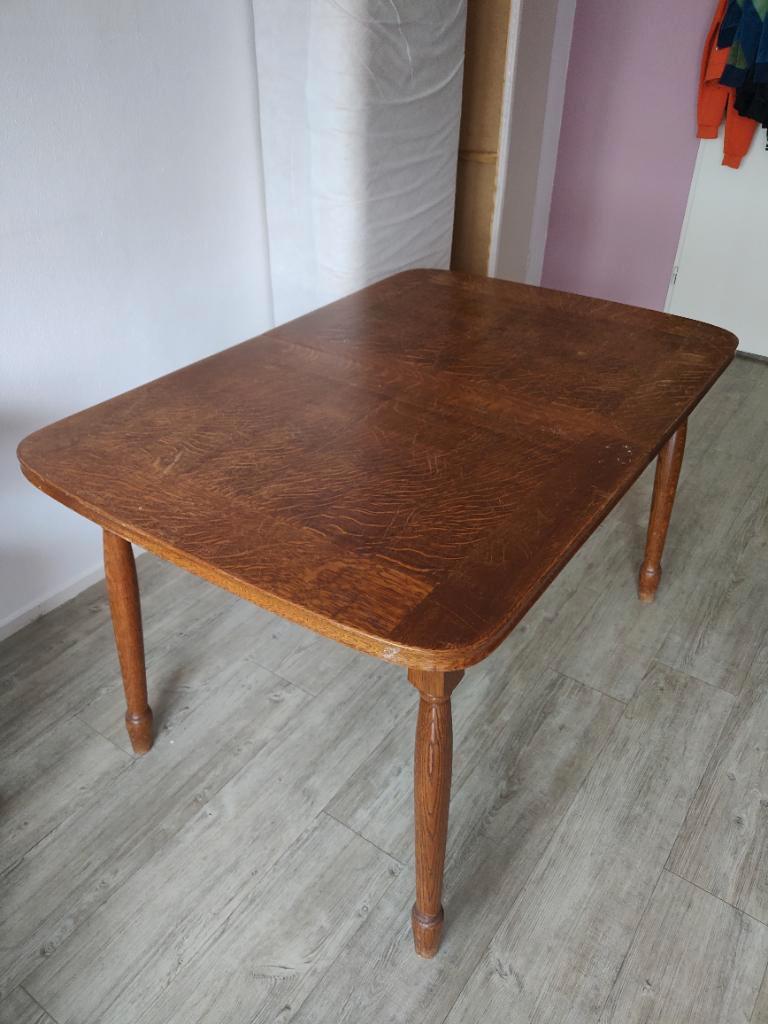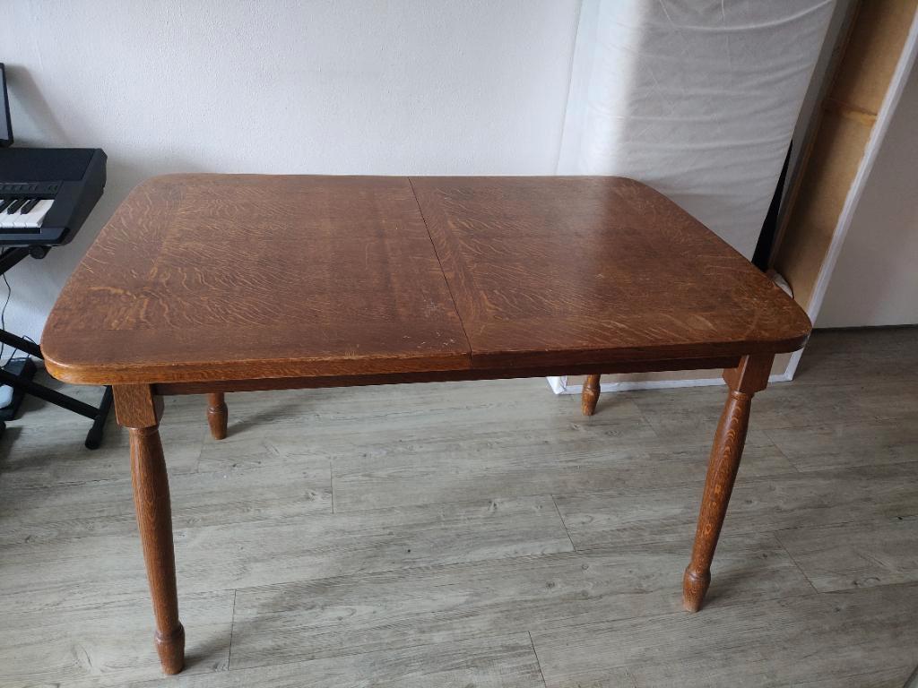 Lengte x breedte tafelblad ingeklapt = 125 x 84 cm uitgeklapt = 160 x 84 cm hoogte = 75 cm kan/ moet uit elkaar bij ophalen.