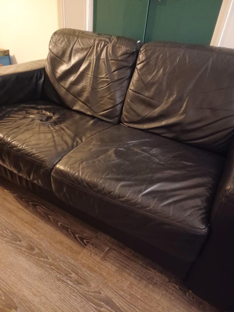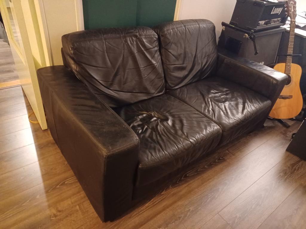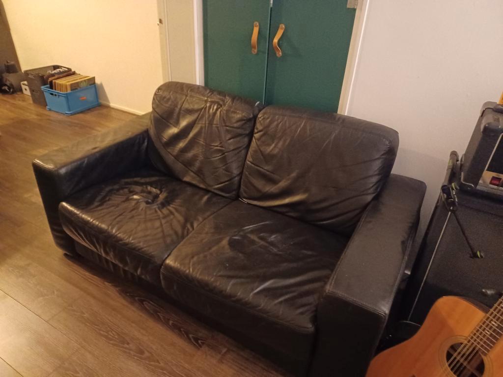 Leren bank, kan prima nog een rondje mee. 1.60 Breed bij 88cm lang, 82 cm hoog bij de rugleuning. Gratis af te halen vanaf de 2e verdieping, geen lift aanwezig en zelf tillen. Heeft bij mij altijd ond