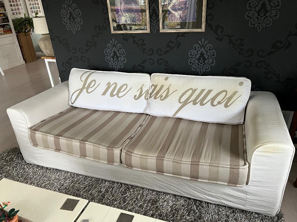 Rivièra maison je ne sais quoi sofa - 3,5-zitsbank bekleding zitkussens vervangen, bank zakt niet door. Afmetingen: diepte: 100 cm breedte: 250 cm hoogte: 100 cm zitdiepte 70 cm zithoogte 50 cm hoogte
