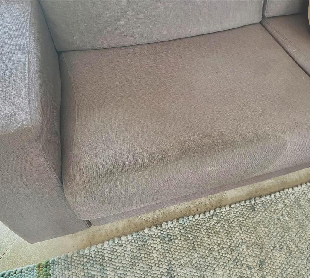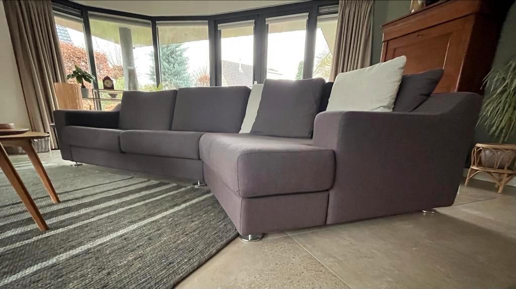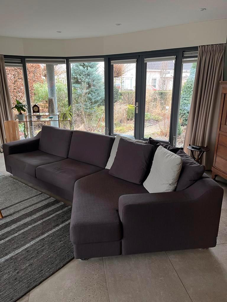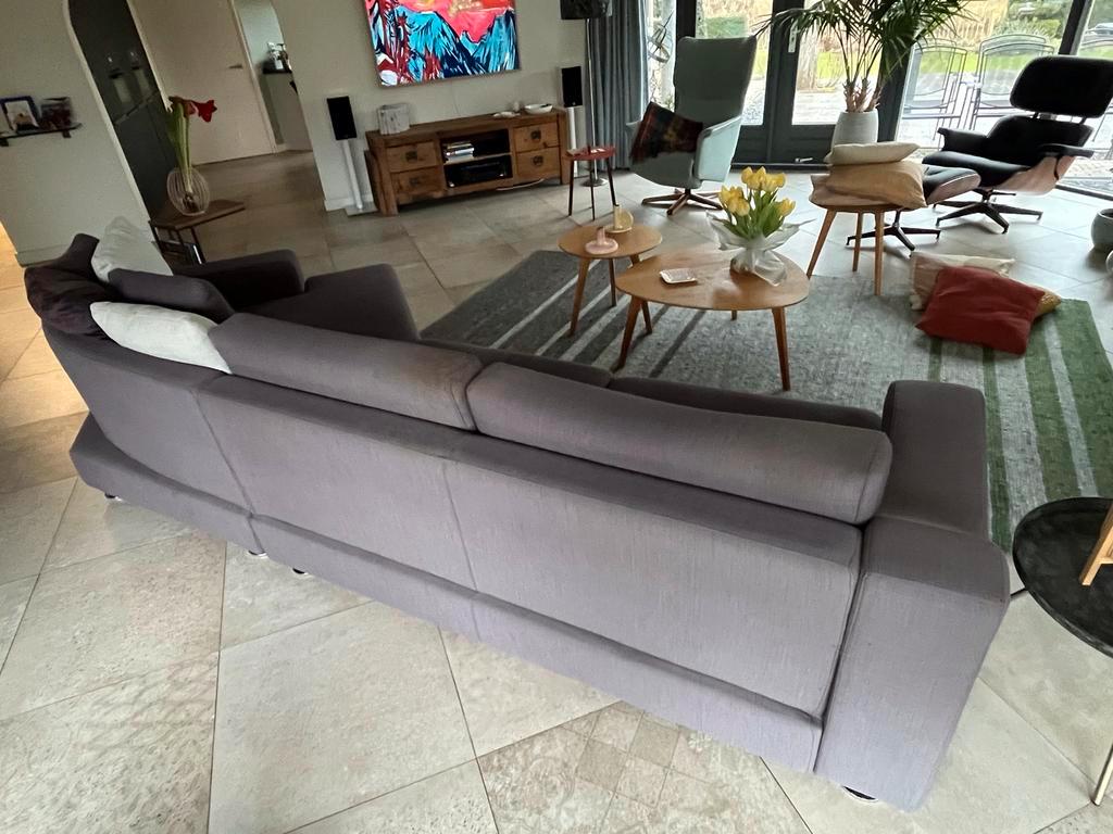Grote bank met loungedeel. Met kleine knik. Zie foto’s. Lengte 350 cm, smalle deel diepte 90 cm en loungedeel 140 cm. Ophalen vanaf as. Vrijdag 13 februari.
